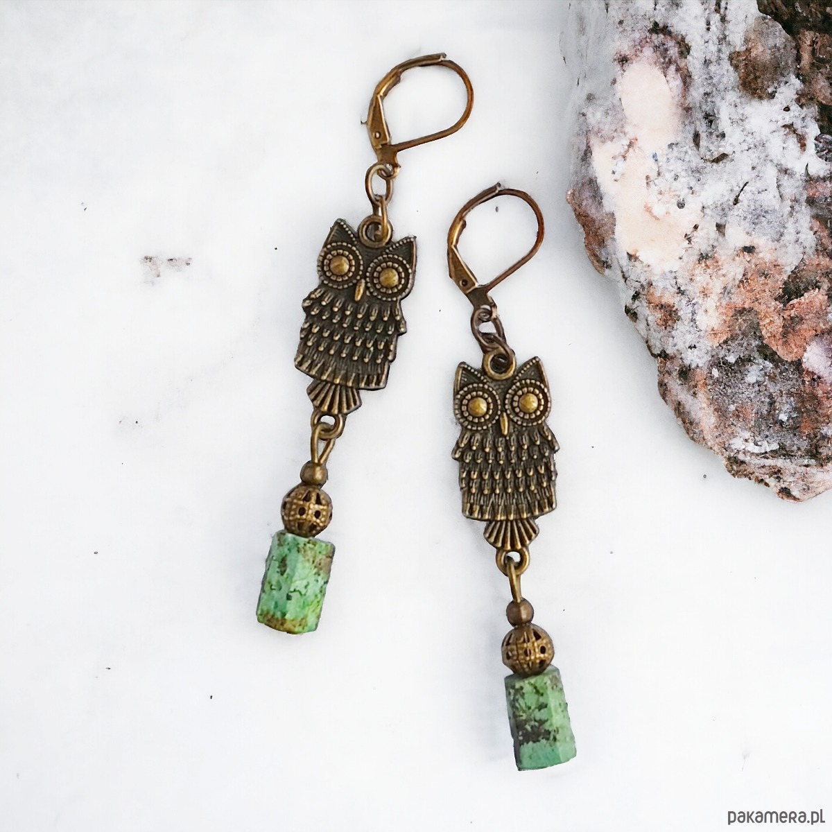 Kolczyki SOWY - turkus afrykański i antyczne złoty - długie