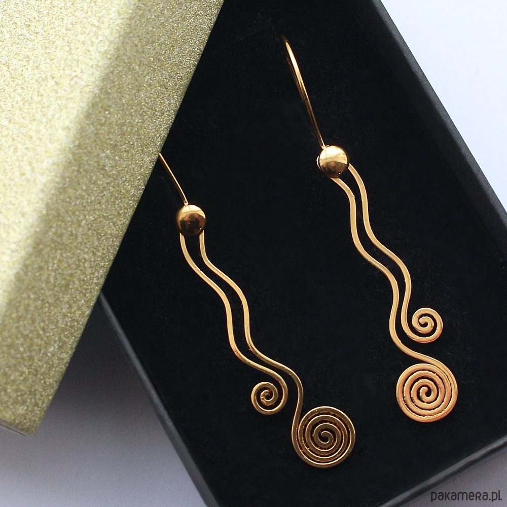 Kolczyki ze stali nierdzewnej pozłacanej 24k złotem. Bigle ze srebra próby 925 pozłacane 24k złotem. Kolczyki są lekkie i hypoalergiczne.