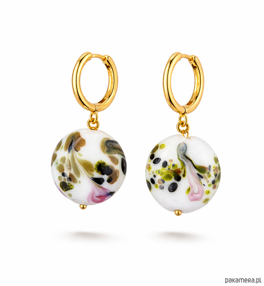 Kolczyki wykonane ręcznie, ze srebra próby 925 pokrytego 24 karatowym złotem oraz ręcznie zdobionego szkła.