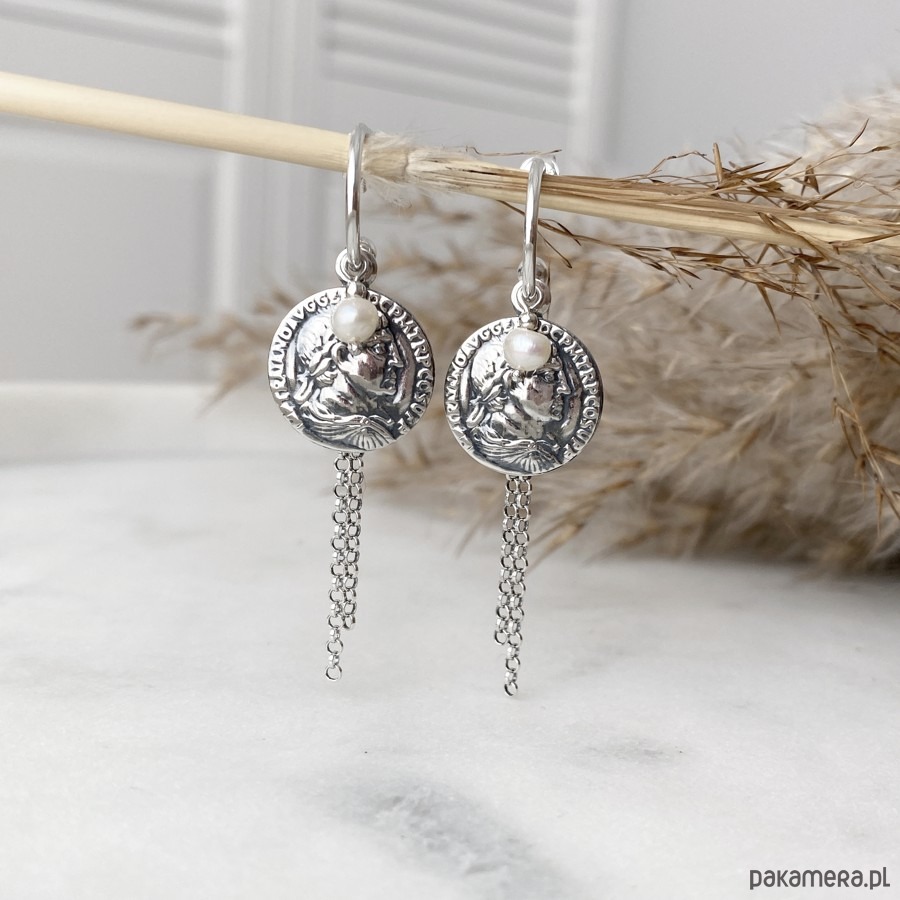 Kolczyki można nosić na kilka sposobów – z łańcuszkami lub bez, z monetkami lub bez, a nawet z samymi perełkami 🙂