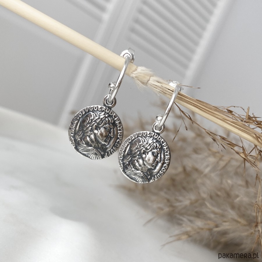 Lekkie, srebrne kolczyki z antyczną monetą.