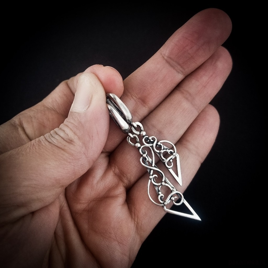 Te unikatowe, asymetryczne kolczyki to połączenie artystycznego rzemiosła i nowoczesnej elegancji, które z pewnością przyciągną wzrok każdej osoby szukającej wyjątkowych dodatków. Wykonane ręcznie z najwyższej jakości srebra próby 999 i 925, te kolczyki są jedynym egzemplarzem, stworzonym z pasją i precyzją. Oploty, którymi ozdobione są kolczyki, tworzą spójną całość, mimo ich asymetrii – wzór jest identyczny, ale różnica w długości nadaje im dynamiczny charakter.