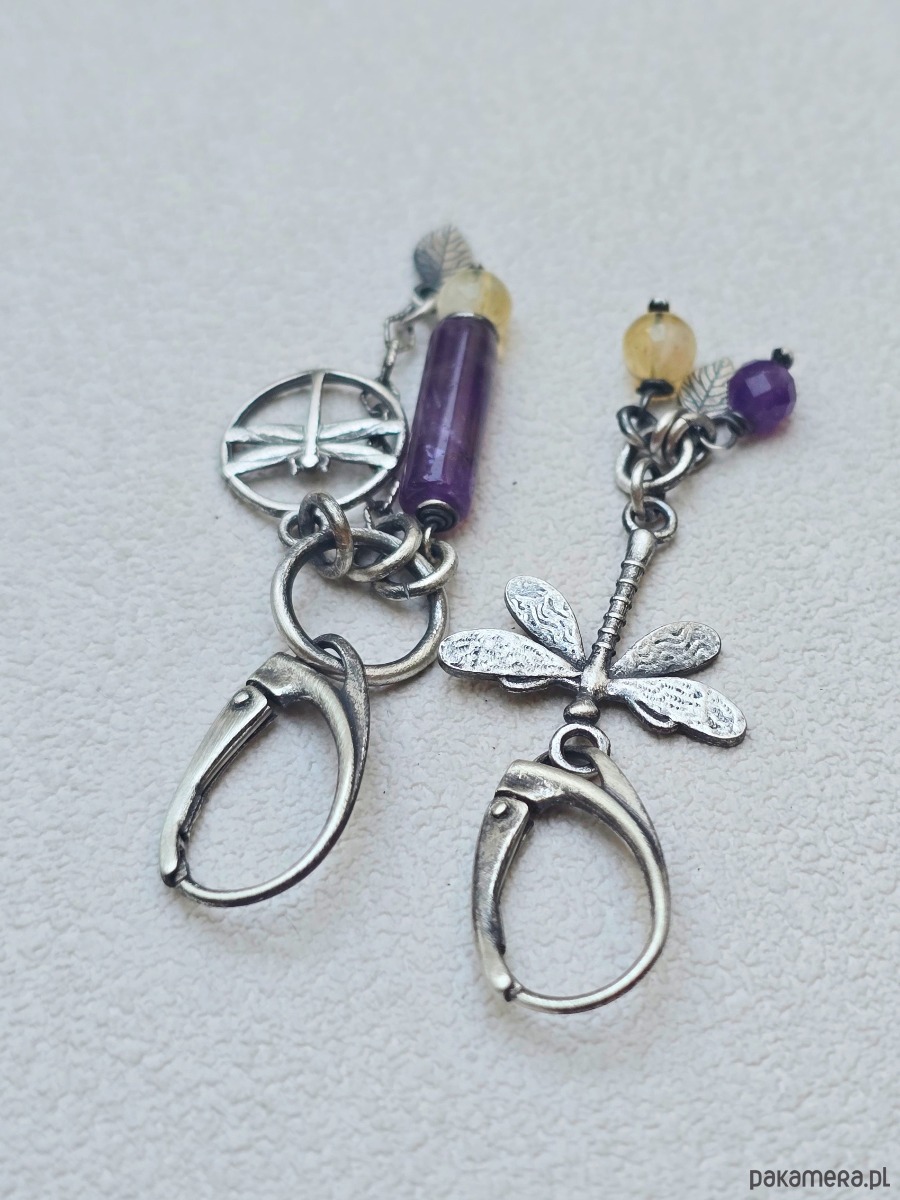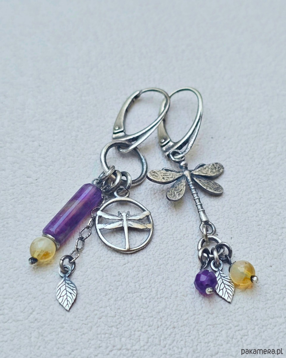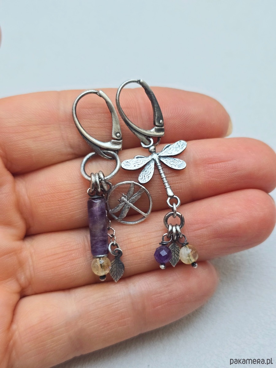 Wyjątkowe kolczyki asymetryczne, na biglach angielskich z motywem ważki.