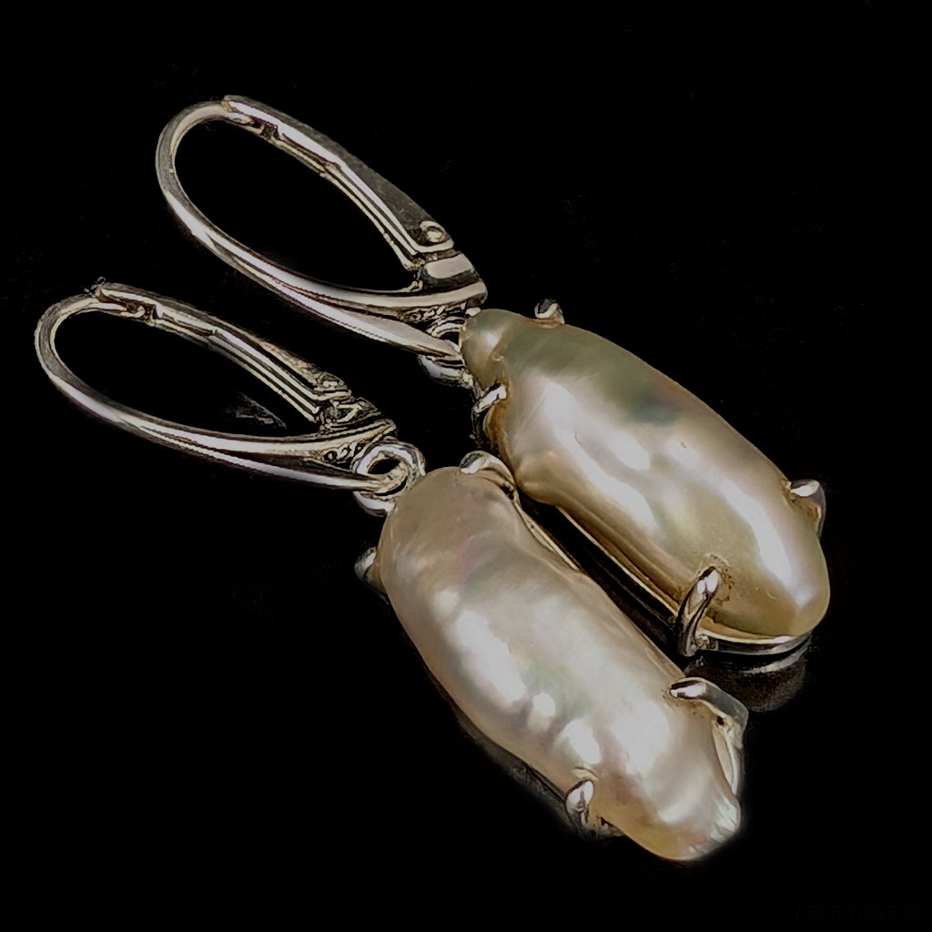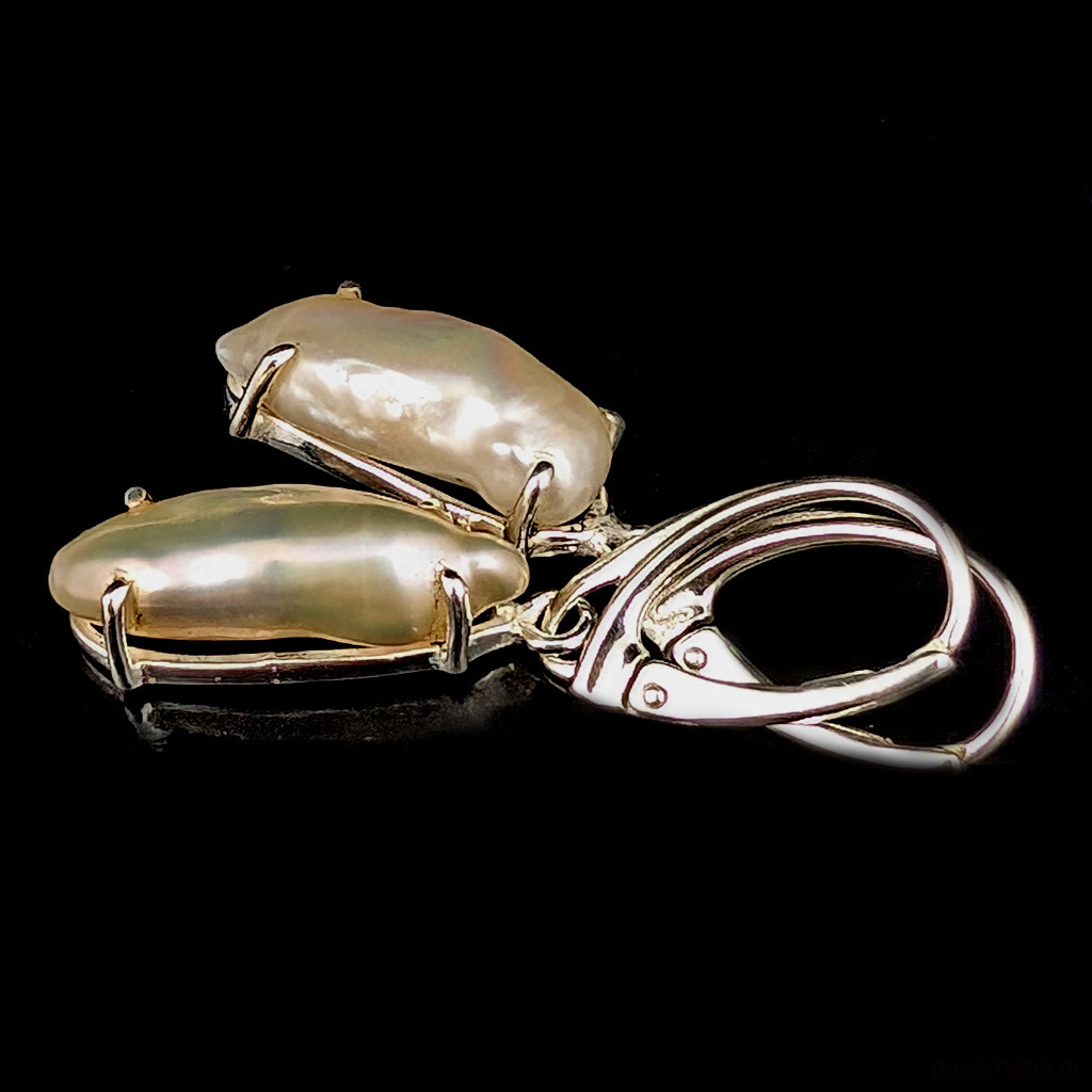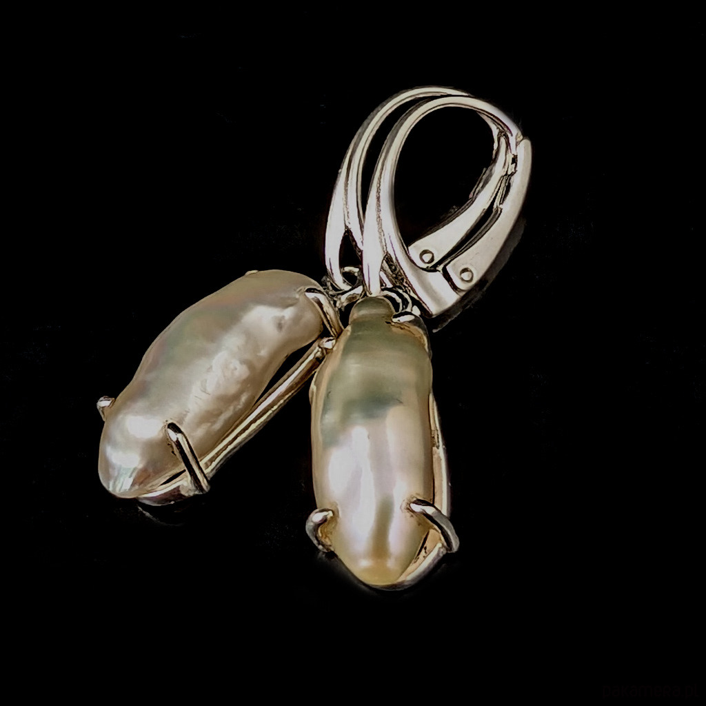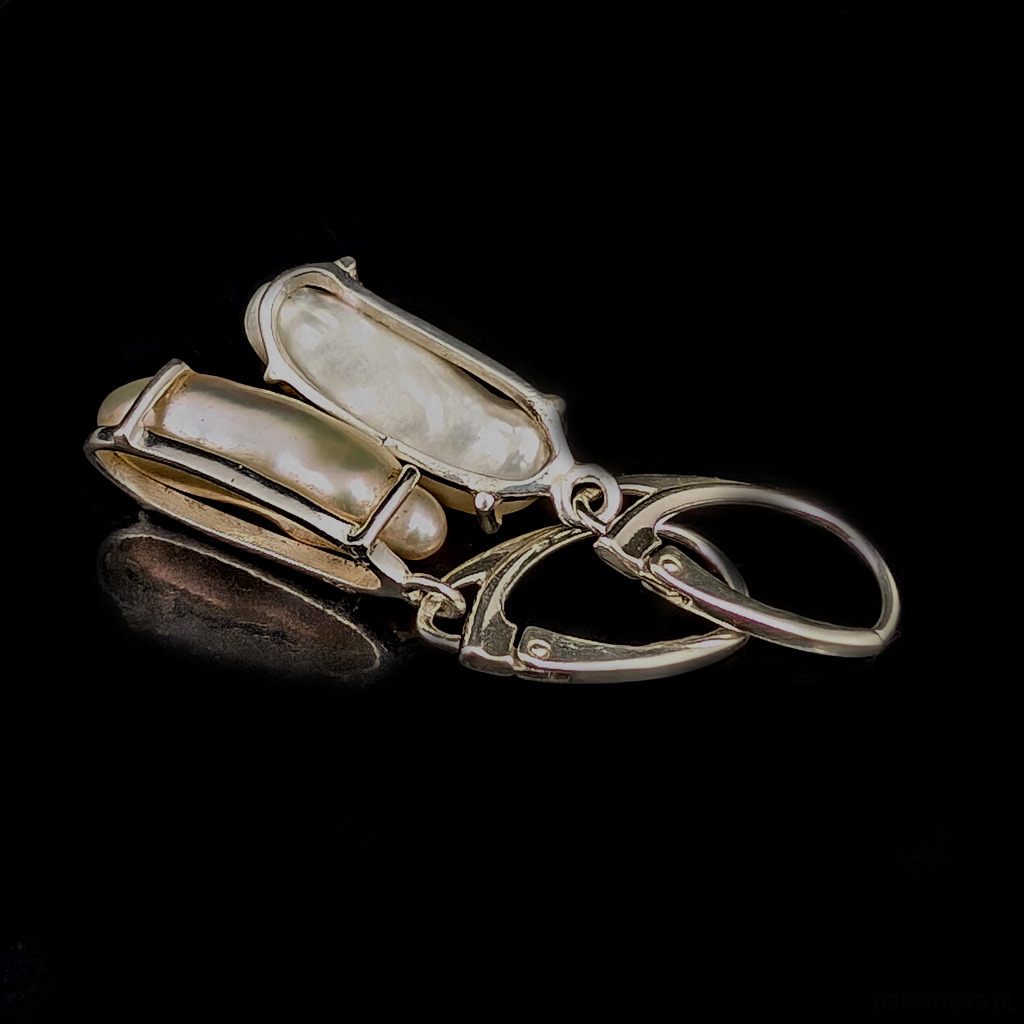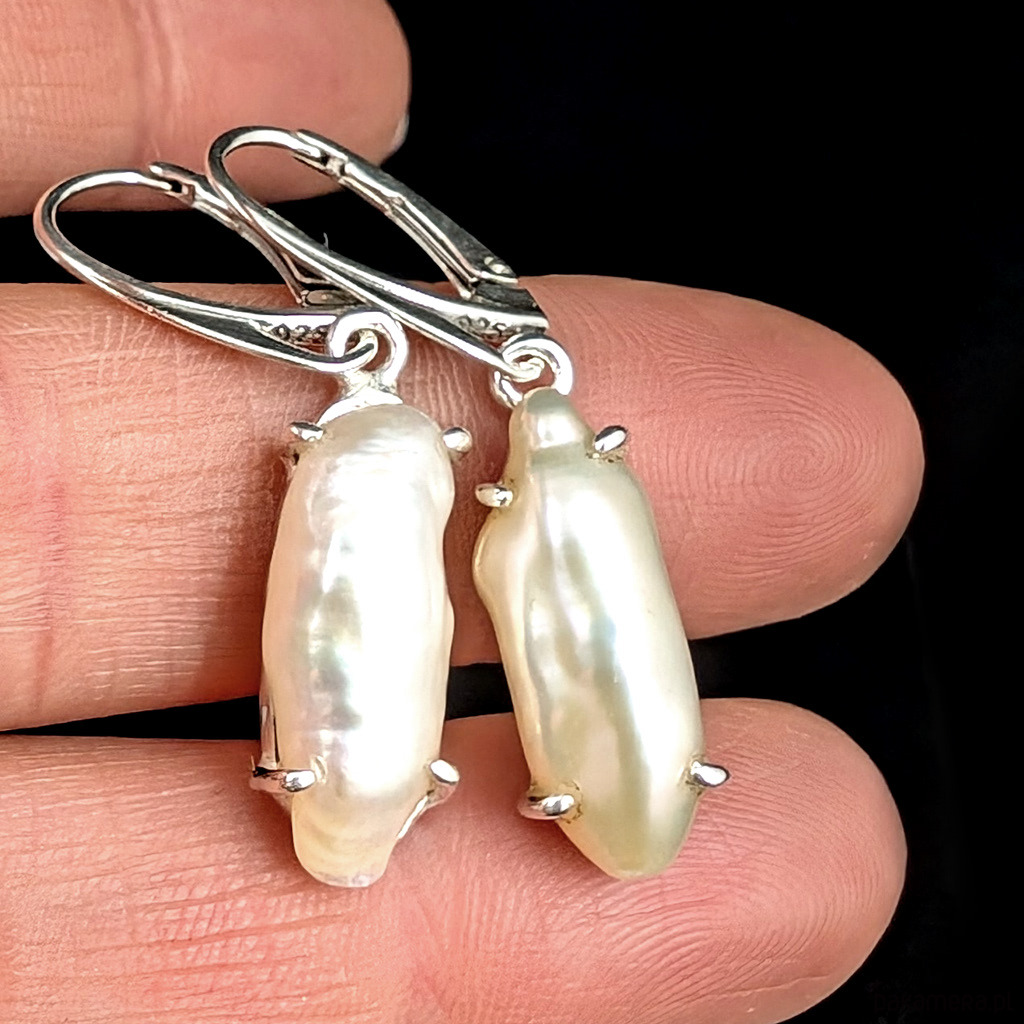 Subtelne kolczyki wykonane ze srebra próby 925 z w komponowanymi naturalnymi perłami. Ponadczasowa elegancja, klasyka z nutą awangardy. Wymiary pereł  19 x 8 mm, długość z biglami 36  mm. Kolczyki są lekkie i komfortowe w noszeniu pomimo swoich rozmiarów. Waga jednego kolczyka 2,63grama. Kolczyki zostaną zapakowane w ozdobne pudełeczko.