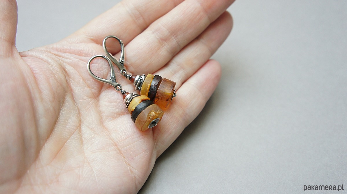 Kolczyki srebrne Bursztynowe dropsy vol. 7