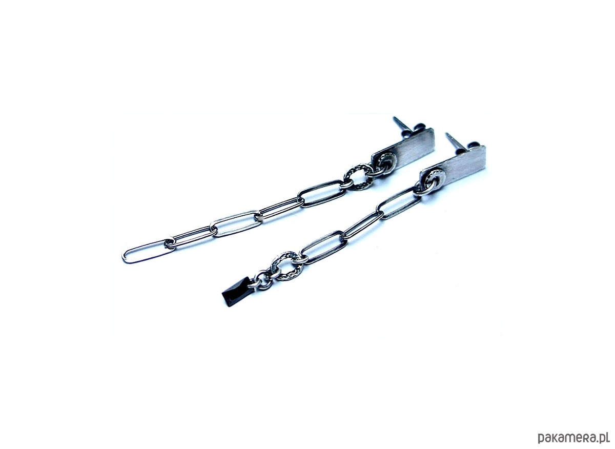 Asymetryczne kolczyki wykonane ze srebra [pr. 925] w połączeniu z cyrkonią .Srebro oksydowane i przetarte. Całkowita długość kolczyków 6,2cm i 7cm . Biżuteria ozdobnie zapakowana.
