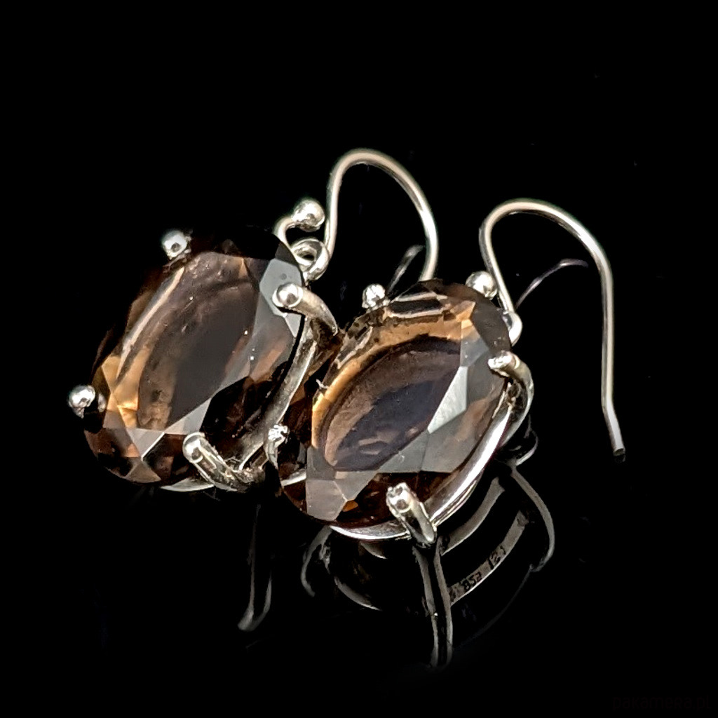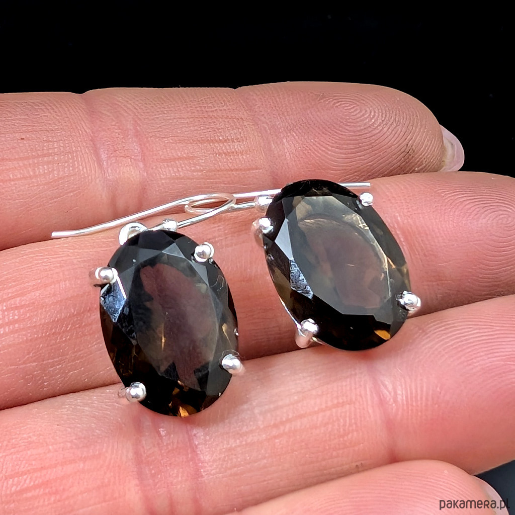Kolczyki srebrne dostojne kwarce dymne