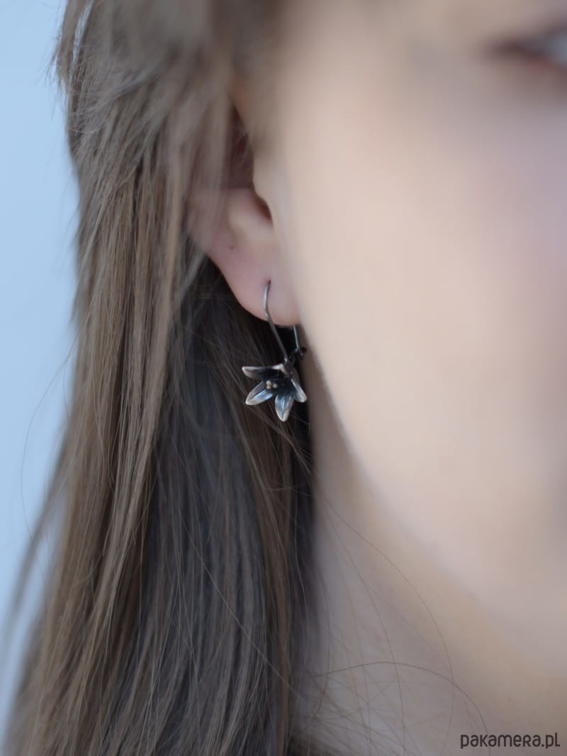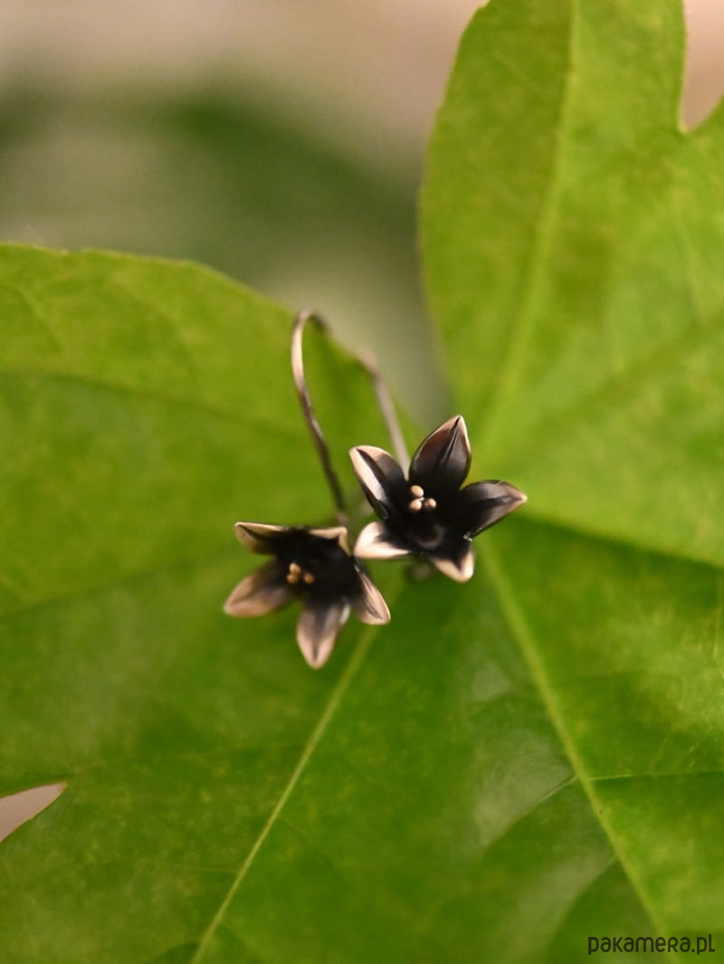 Pokryte oksydą i wypolerowane, szerokość kwiatuszków 1,4 cm. Długość 2,5 cm.