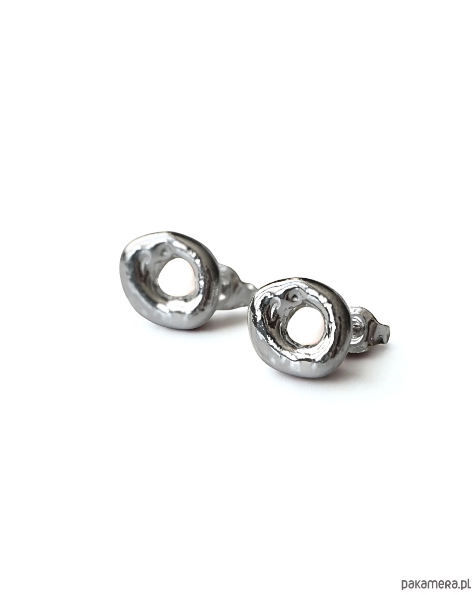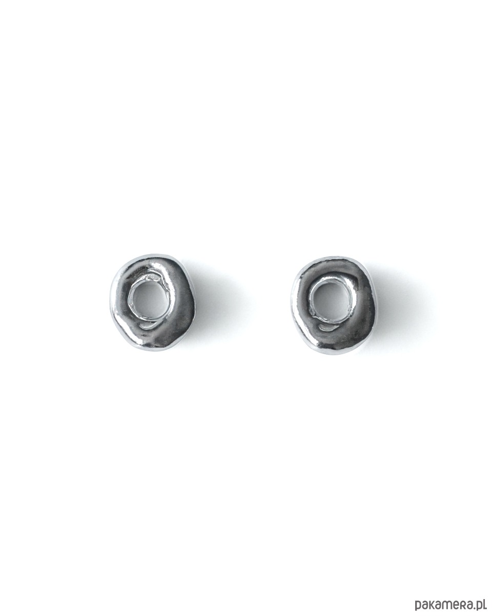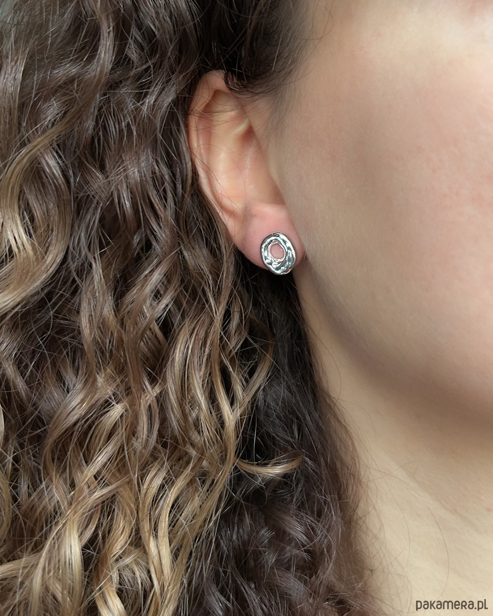 Srebrne nieregularne kolczyki o obłym kształcie.