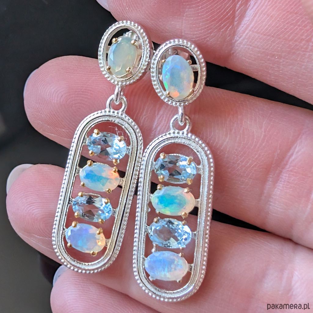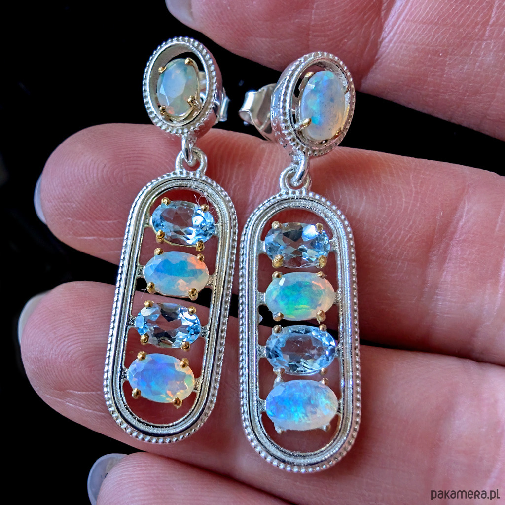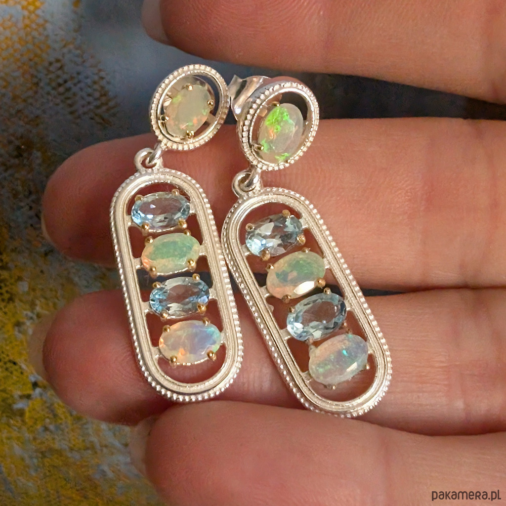 Kolczyki srebrne eteryczne z opalami i topazami