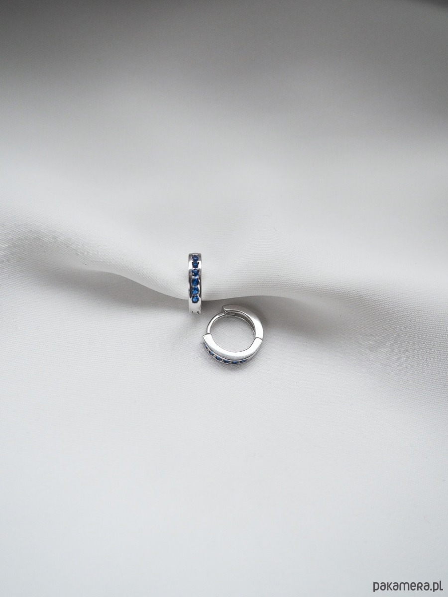 Eleganckie kolczyki koła z dodatkiem niebieskich cyrkonii. Wykonane ze srebra o próbie 925.