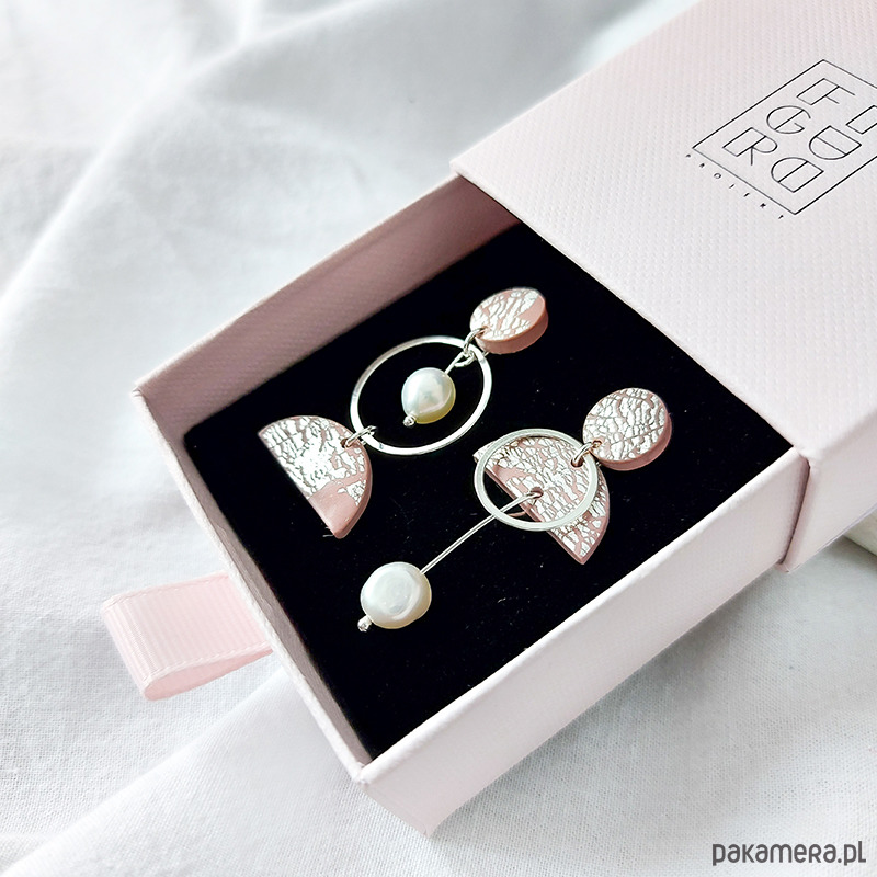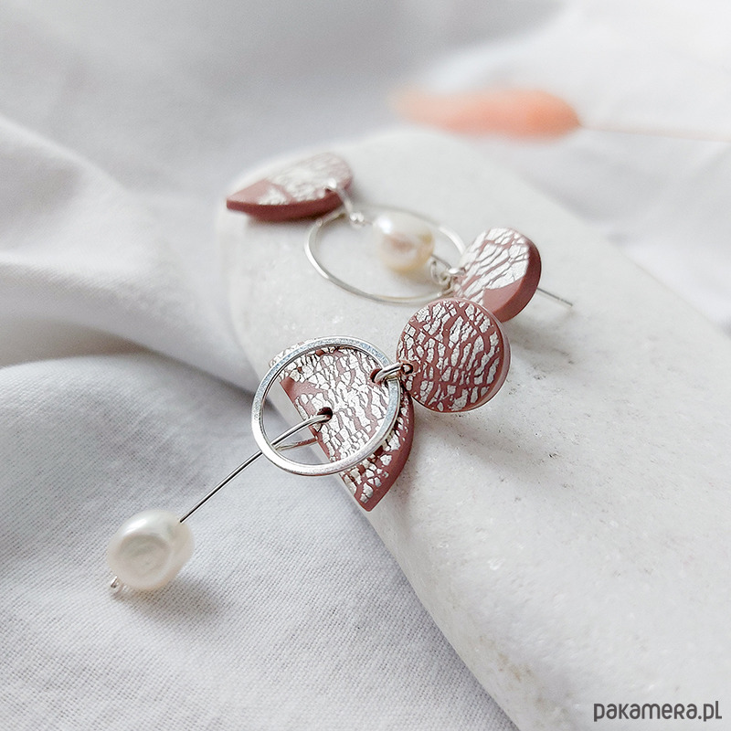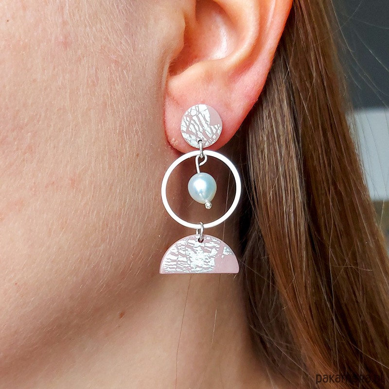 Kolczyki srebrne asymetryczne perełki różowe sreberka