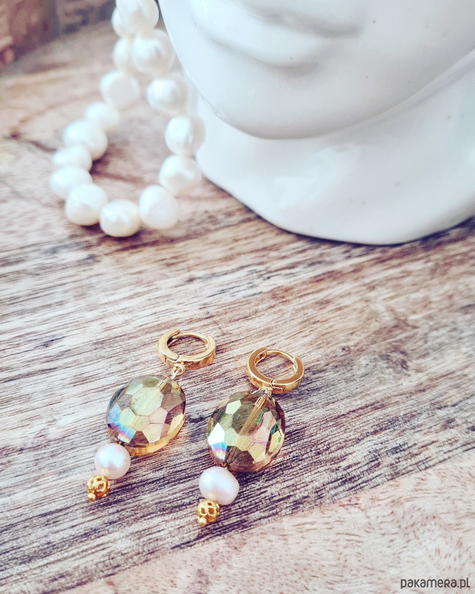 Kolczyki wykonane ręcznie, ze srebra pokrytego 24 karatowym złotem, z perłą naturalną.