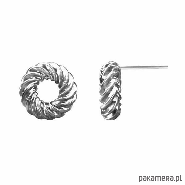Małe skręcane kółeczka na sztyfcie. Kolczyki wykonane ze srebra próby 925.