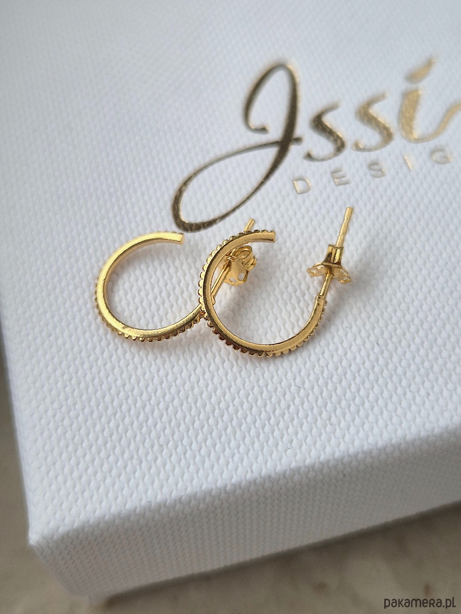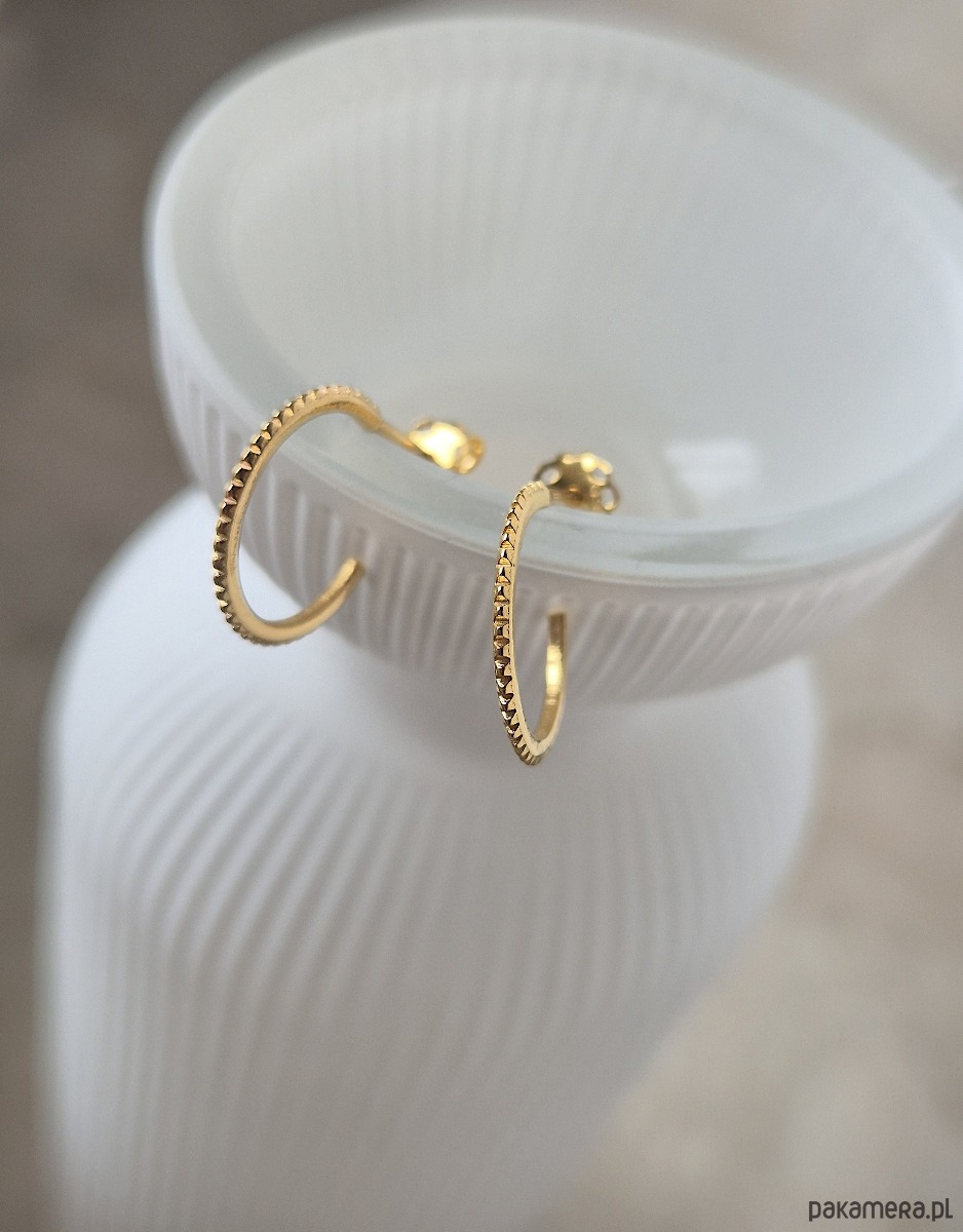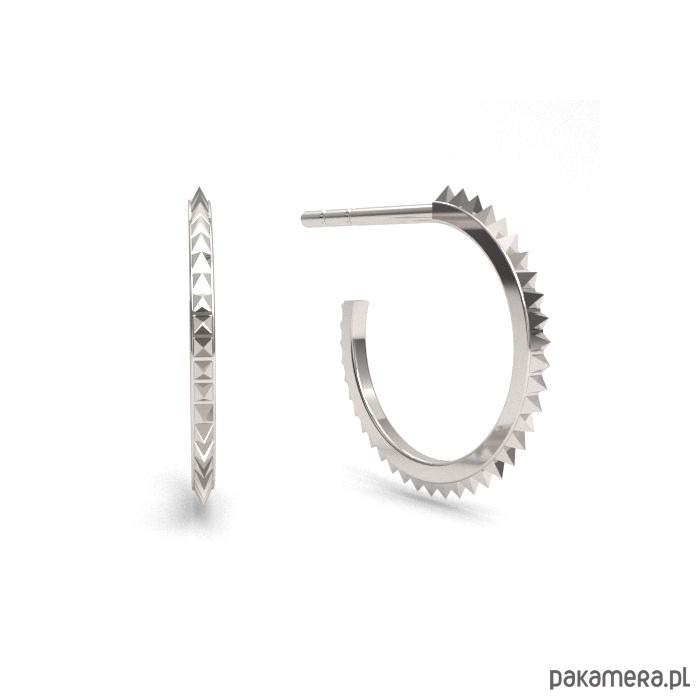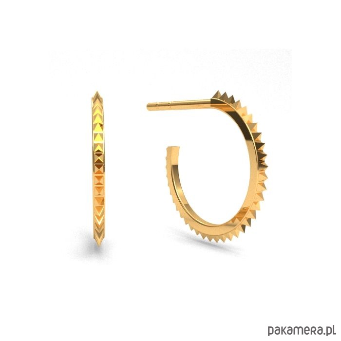 Kolczyki koła z kolcami, zapinane na sztyfty, wykonane ze srebra próby 925, srebra pokrytego 24kt złotem lub 18kt różowym złotem.