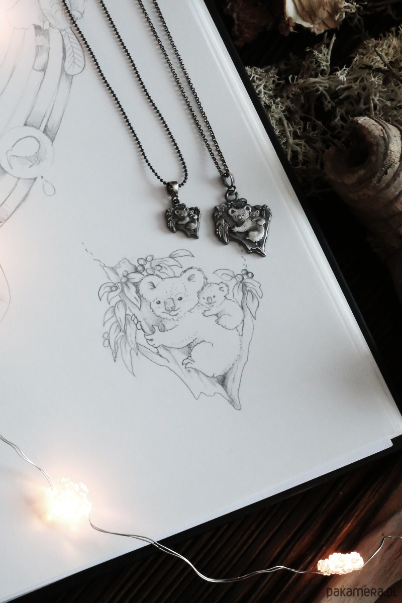 Na innych aukcjach odnajdziesz mini lub duży wisiorek do kompletu oraz dużą broszkę z przedstawieniem identycznej pary koali.