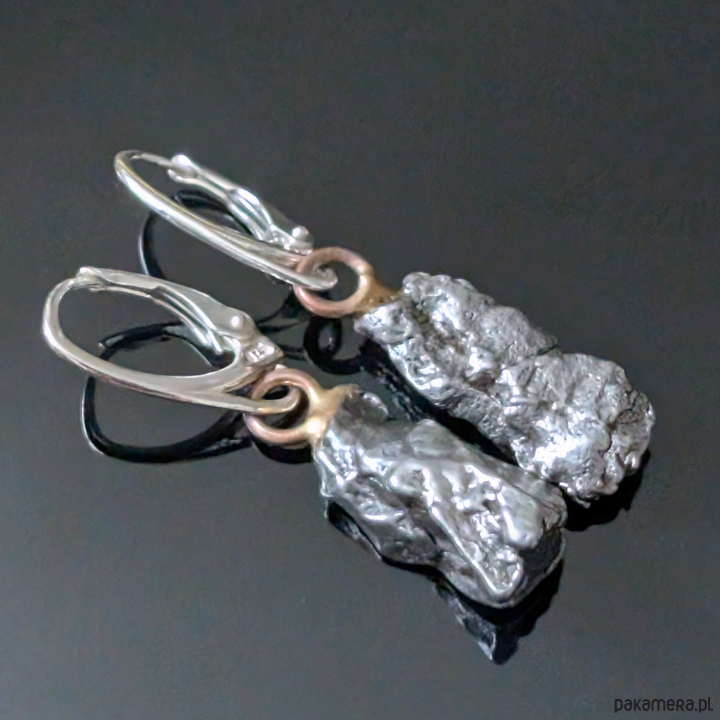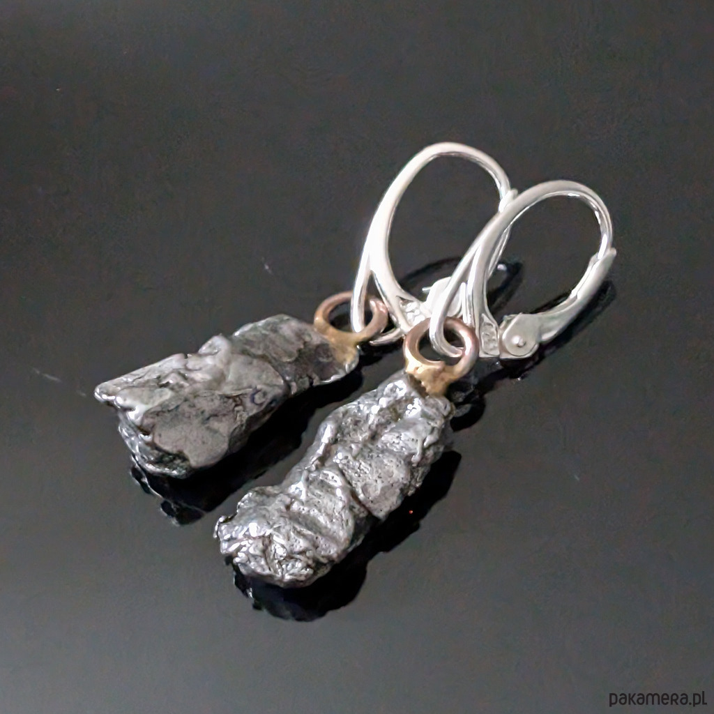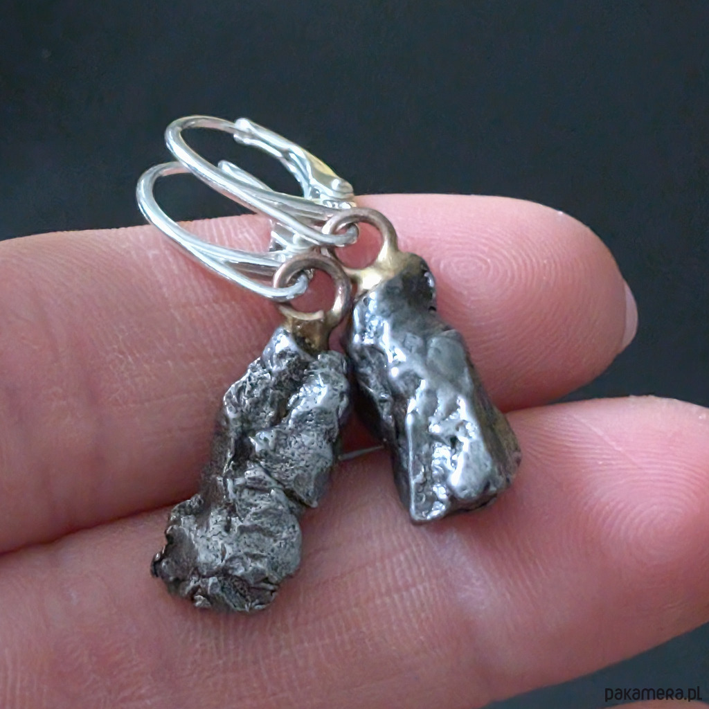 Kolczyki srebrne kosmiczne surowe meteoryty