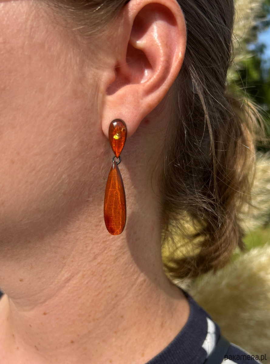 Kolczyki srebrne krople z bursztynu