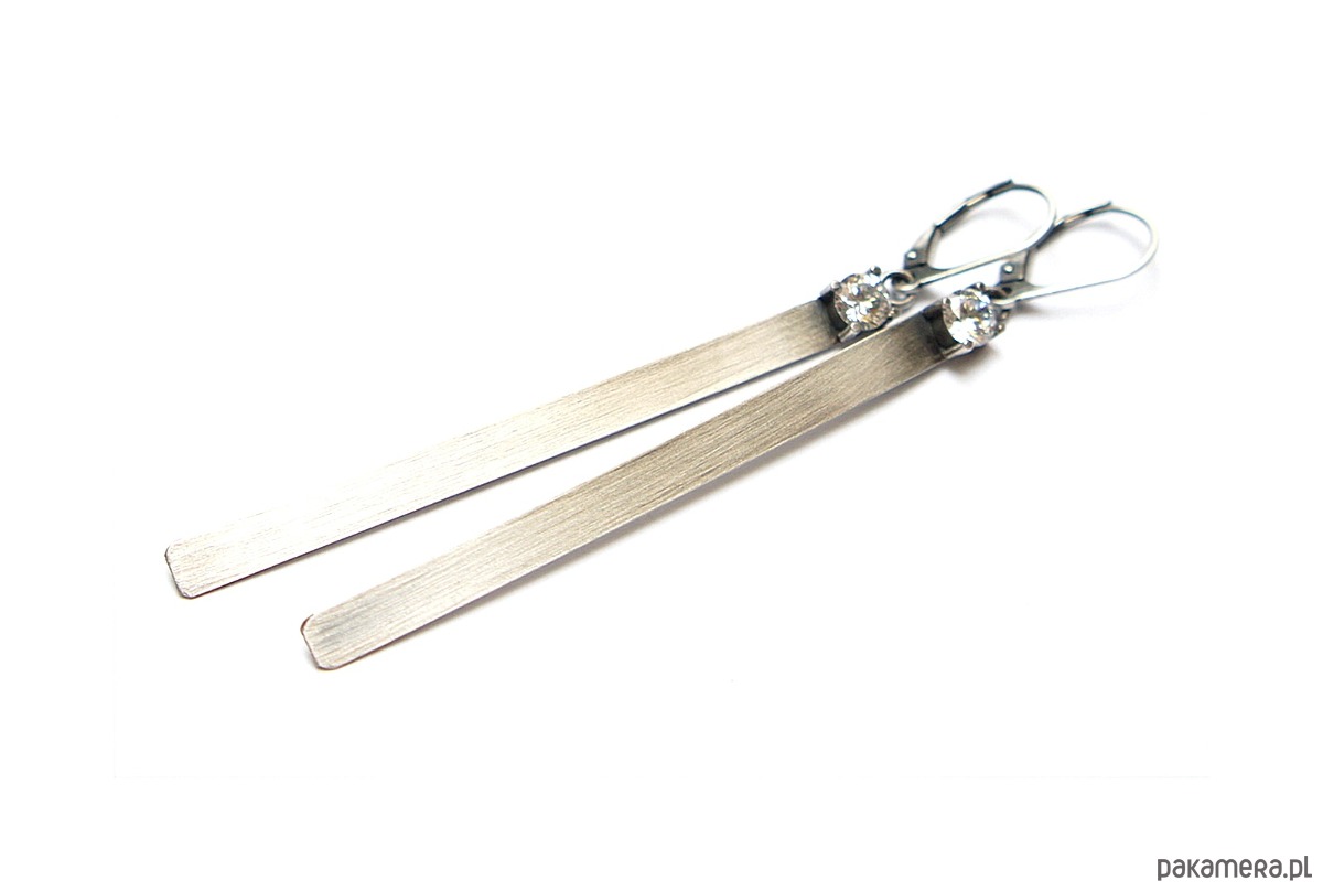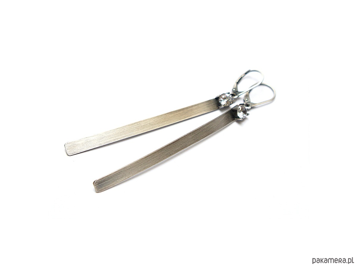 Kolczyki wykonane własnoręcznie od podstaw ze srebra [pr.925] w połączeniu cyrkoniami [5mm]. Srebro oksydowane i przetarte. Całkowita długość kolczyków około 8,2cm. Biżuteria ozdobnie zapakowana.