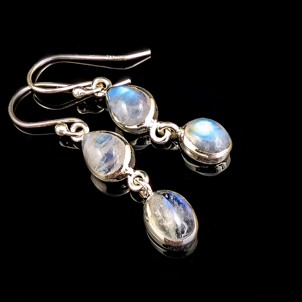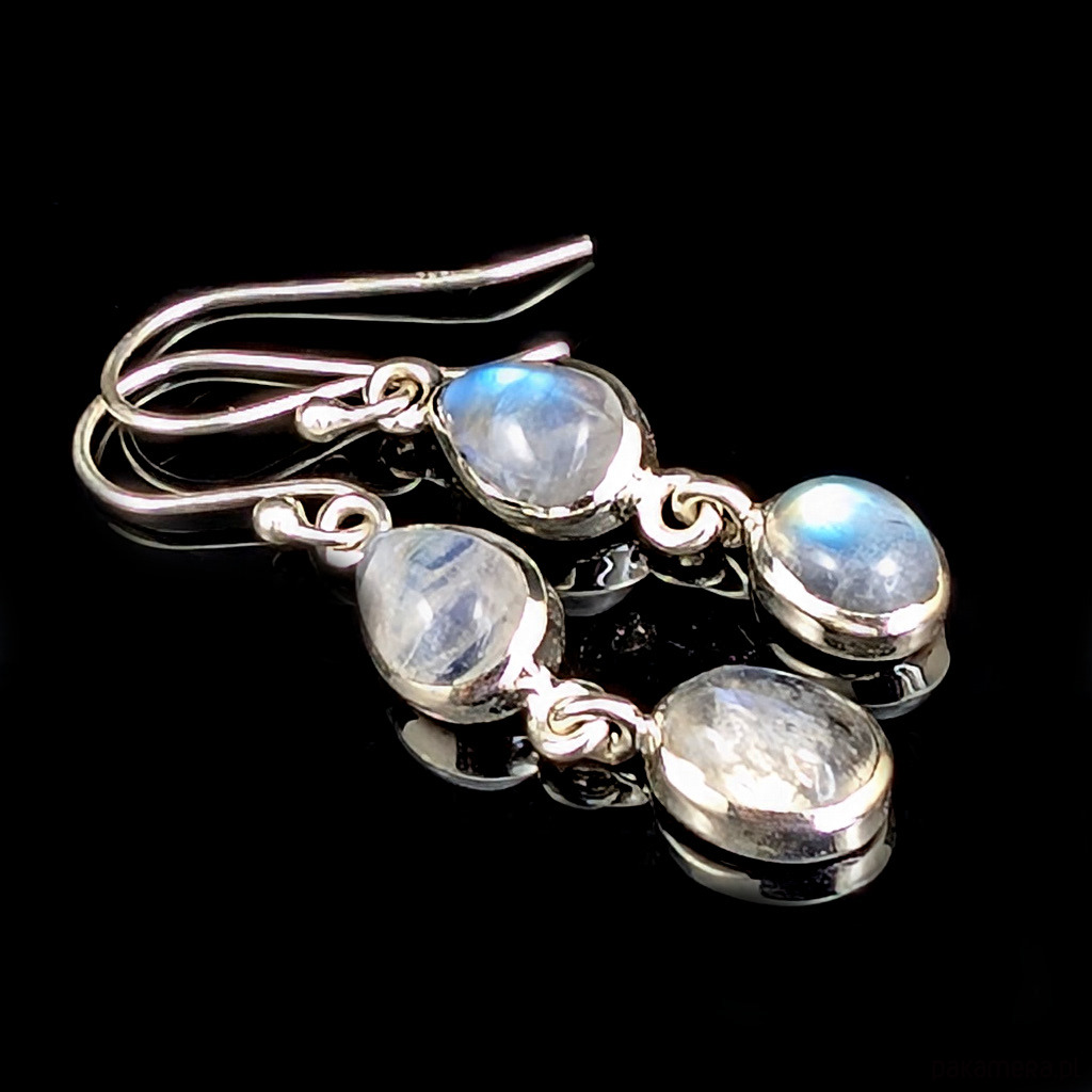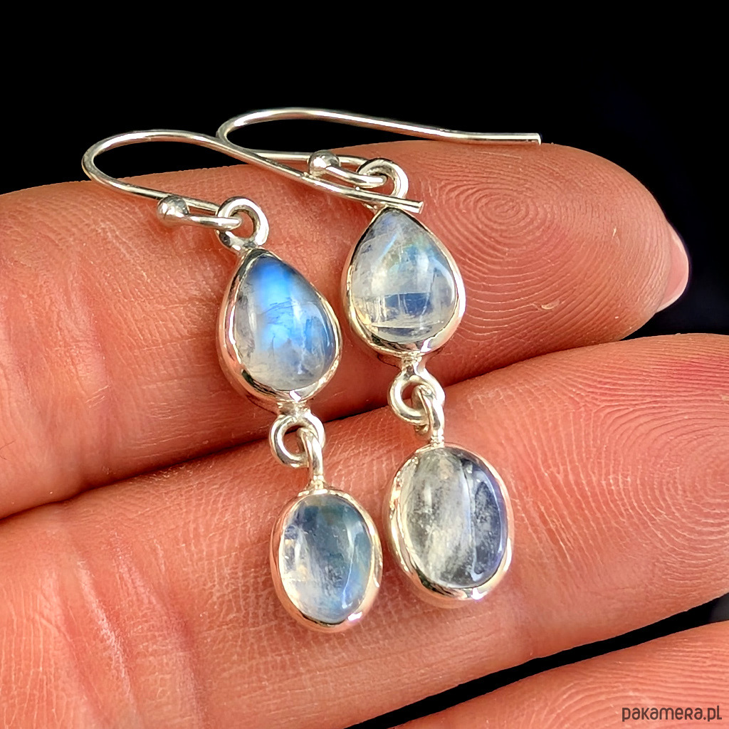 Kolczyki wykonane ze srebra próby 925 oraz naturalnych kamieni księżycowych w ciekawej adularyzacji.