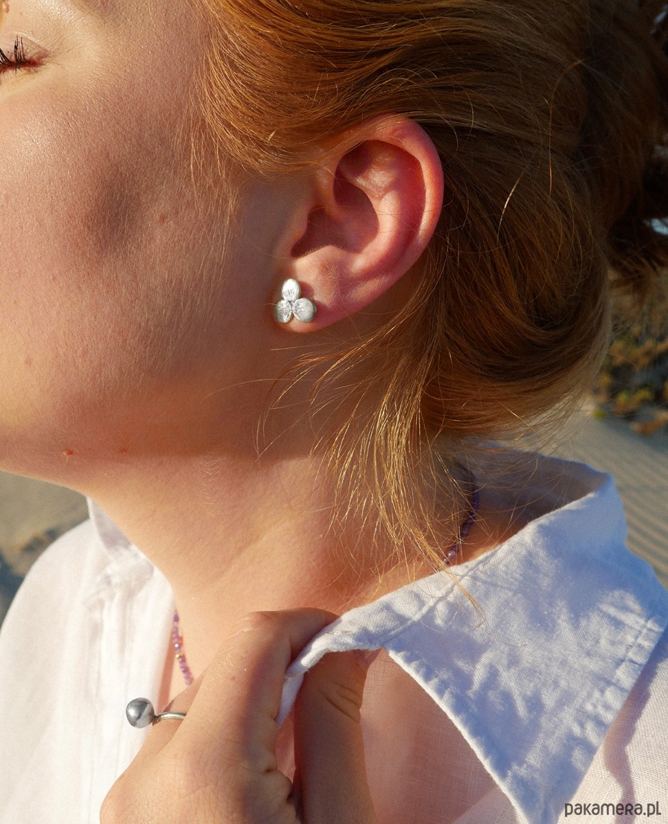 Kolczyki, minimalistyczne w formie kwiatuszków na sztyftach. Wykonane ręcznie ze srebra 925.