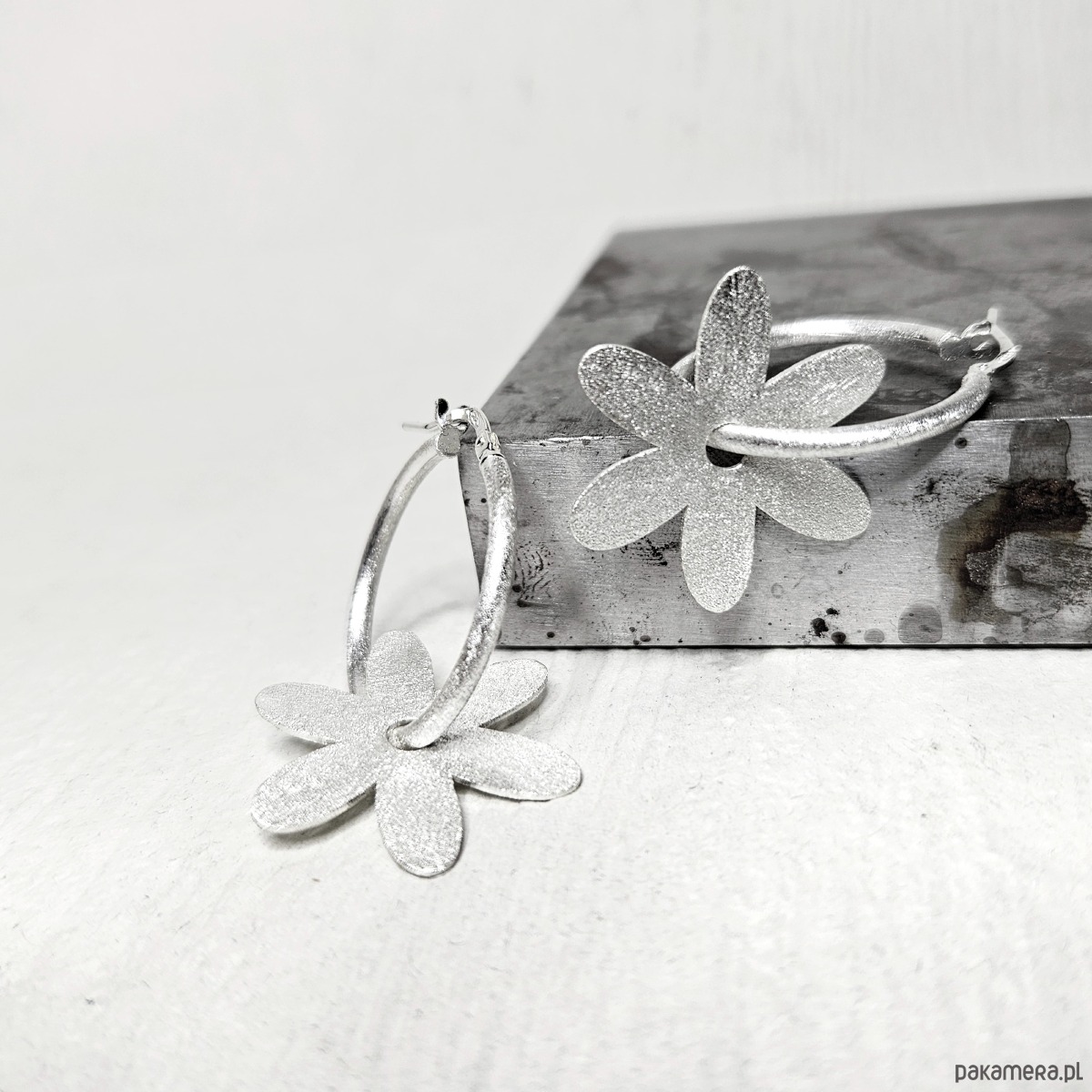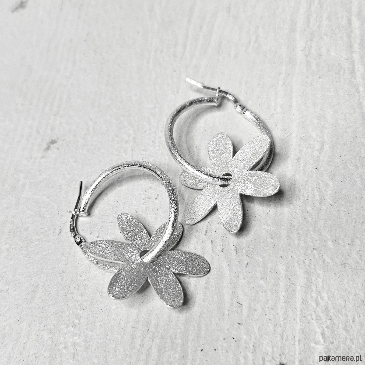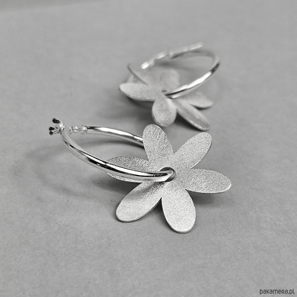 Wykonałam je ręcznie ze srebra próby 925. Wykończyłam fakturą matową, której subtelny blask podkreśla oryginalność kolczyków.