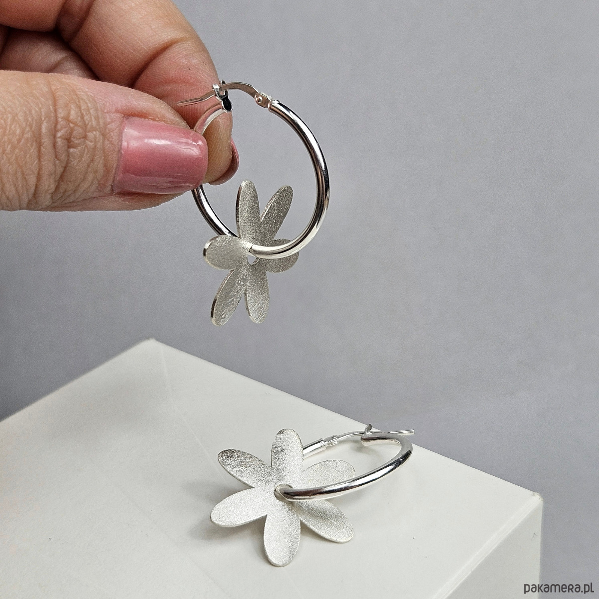 Kolczyki pakuję w jubilerskie pudełko z logo.