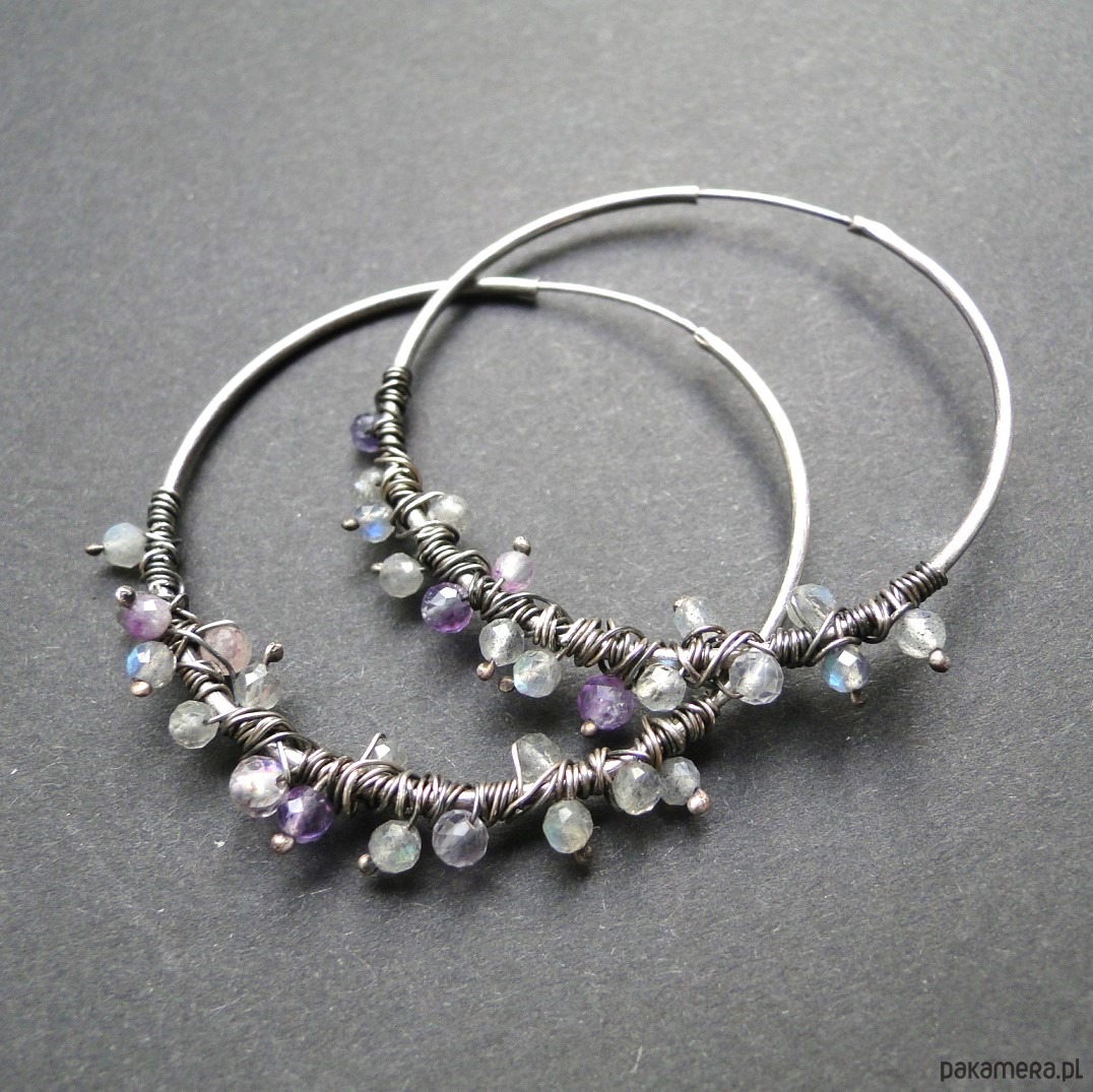 Kolczyki srebrne Labradoryt zamotany