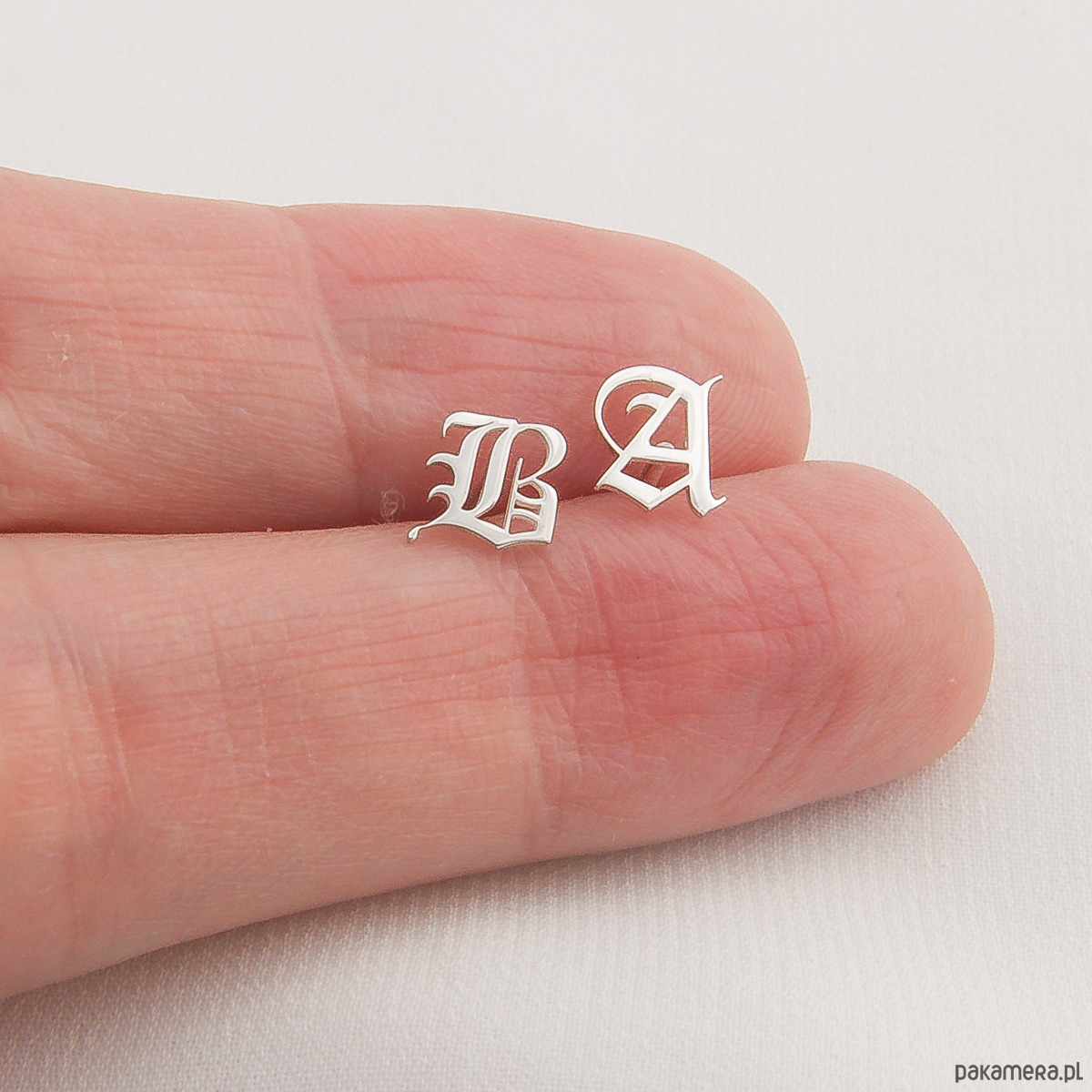 Wielkość kolczyków to 5x5mm. Kolczyki są wykonane z blachy o grubości 0,5mm. Zapięcie do kolczyków w zestawie. W wiadomości do zamówienia podaj litery które chcesz otrzymać.
