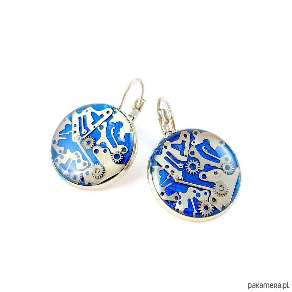 Przepiękne kolczyki, wykonane ręcznie z elementów starych zegarków zatopionych w żywicy. Każda para jest unikalna i niepowtarzalna.