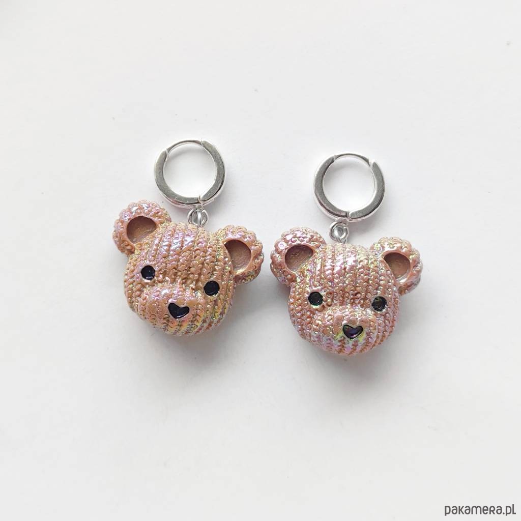 MIŚ kolczyki -uroczy design. Nietuzinkowy dodatek idealnie stanowi uzupełnienie swobodnych, casualowych stylizacji. Kolczyki wykonane są z : koralik akrylowy – miś – (23X 19 mm), srebrne bigle zapinane okrągłe kajdanki AG925 12mm. Ten niebanalny drobiazg na pewno wywoła uśmiech na Twojej twarzy.