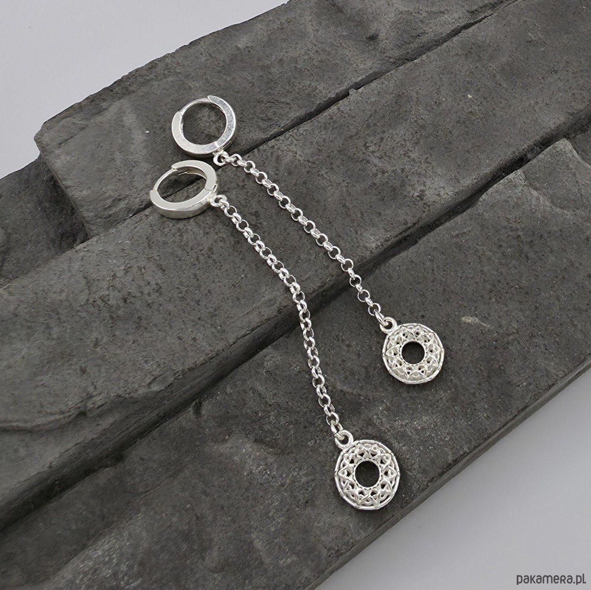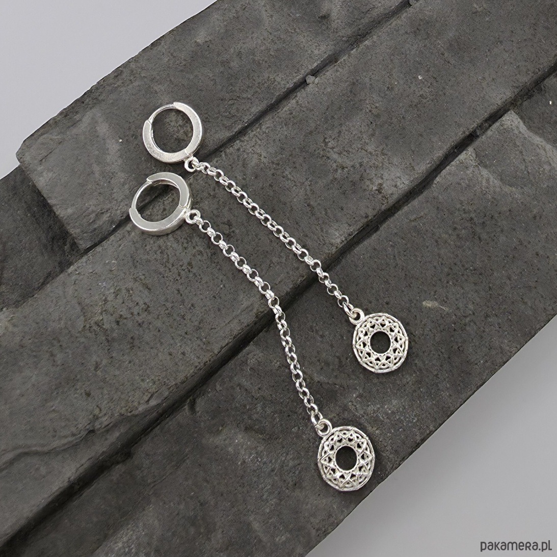 Kolczyki srebrne Misterne rozety na łańcuszkach