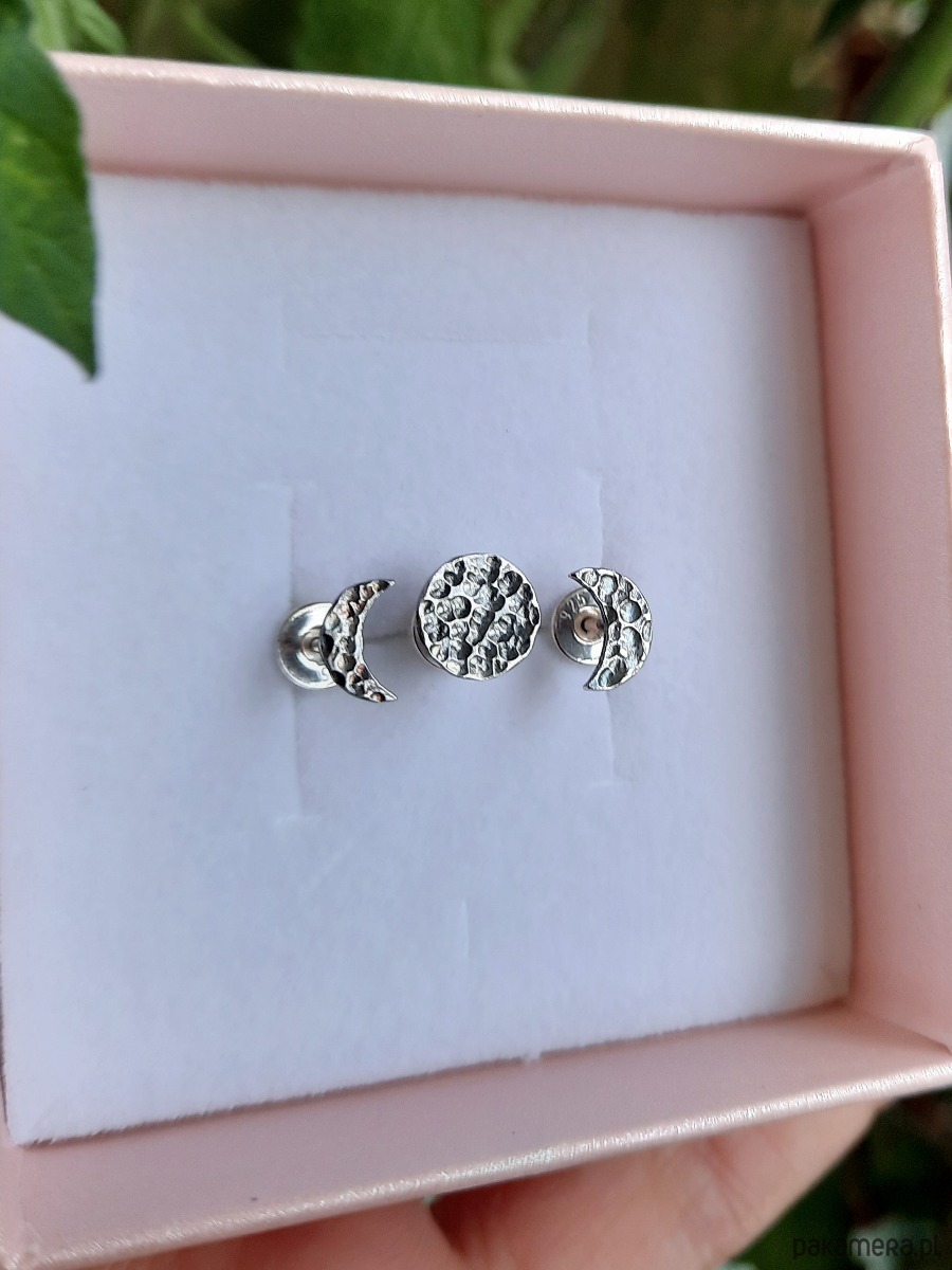Kolczyki srebrne MOON Pełnia i Sierpy 3szt