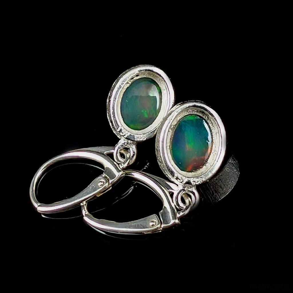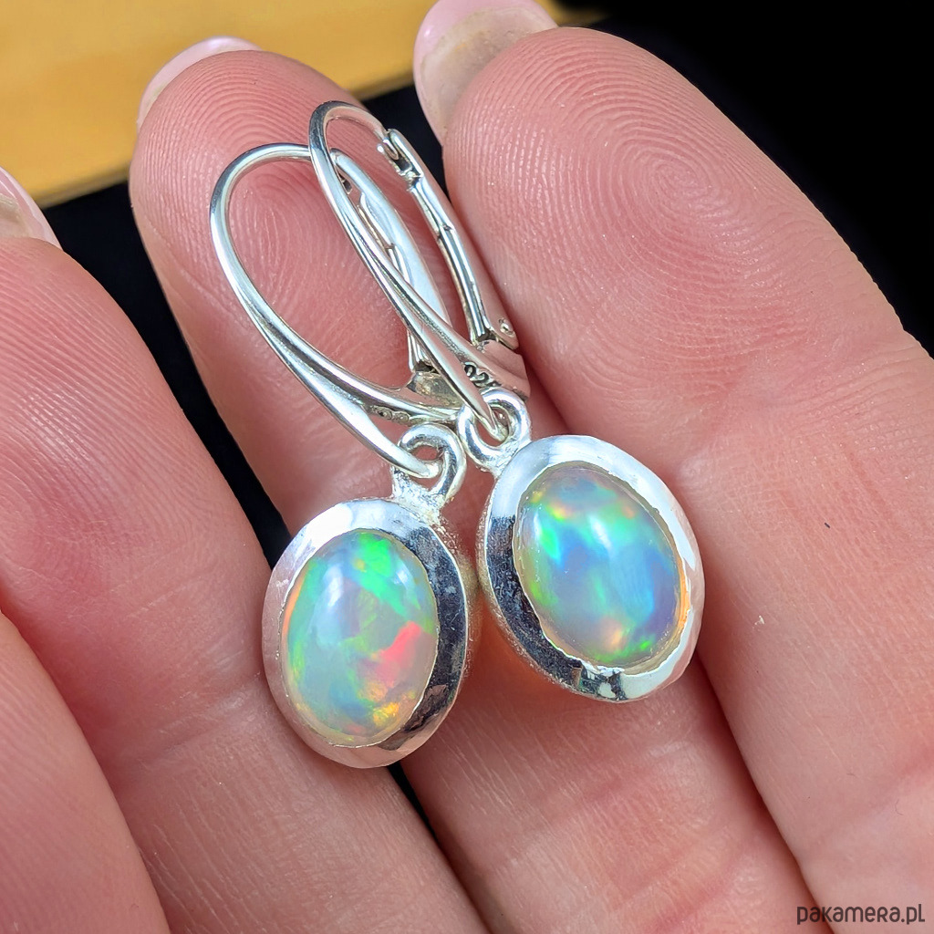 Kolczyki wykonane ze srebra 925 oraz pięknych etiopskich opali. Wymiary elementów oprawy kamienia 12 x 10 mm. Zapinane na klasyczne bigle angielskie. Długość całości z biglami 31 mm. Waga jednego kolczyka 2,75 g. Kolczyki zostaną zapakowane w ozdobne pudełeczko. Wykonane przez dostawcę kamieni.