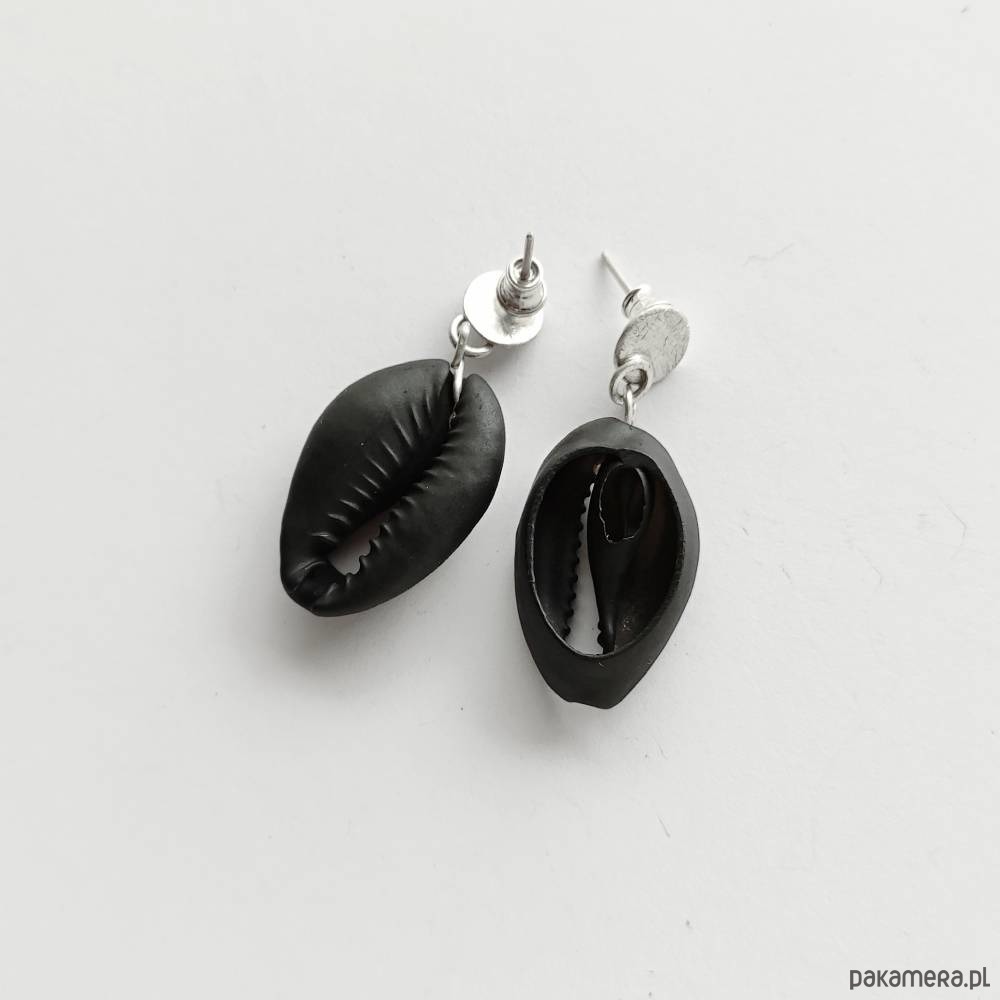 MUSZLE - zabawny dodatek. Ciekawy dodatek przykuwają uwagę i zaskakuje wzornictwem. Takie kolczyki sprawią, że każda stylizacja nabierze niepowtarzalnego, fantazyjnego charakteru. Kolczyki na sztyftach wykonane z : srebro, Muszelki Kauri cięte 2 cm. Srebro- zmatowiony. . Długość z biglami - ok. 3,5 cm.