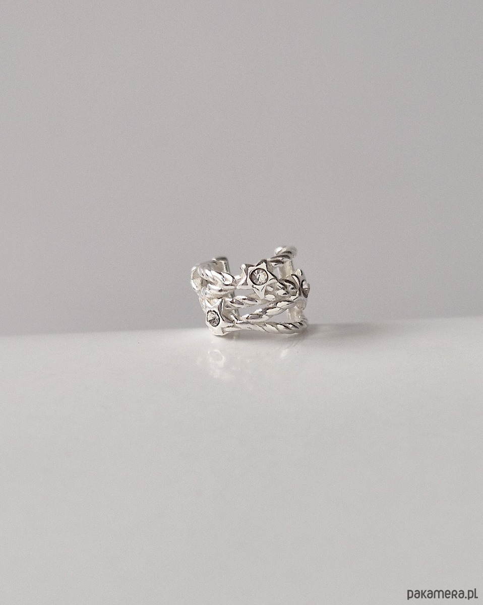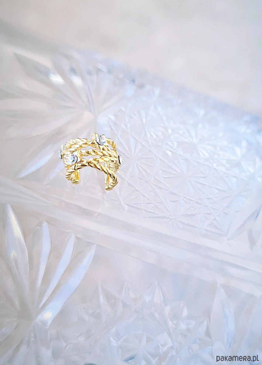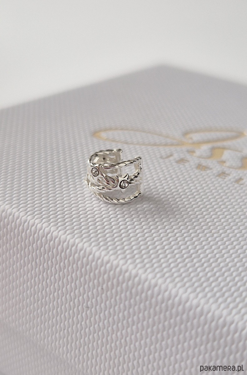 Ozdobna nausznica sznurkowy wzór z 4 kryształkami Preciosa, srebro próba 925, srebro pokryte 24 karatowym złotem lub różowym złotem.