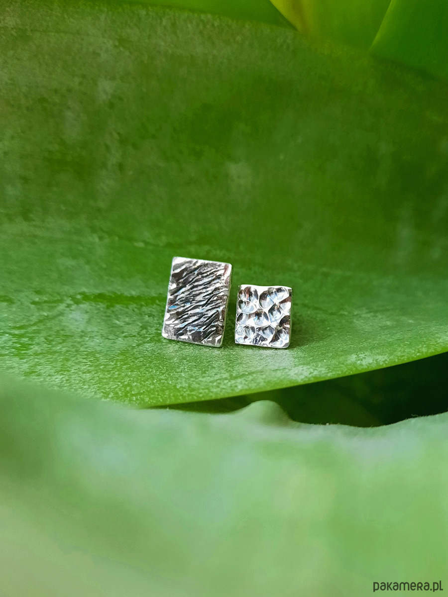Srebrne kolczyki wykonałam własnoręcznie, wzory pokryłam ciemną oksydą.