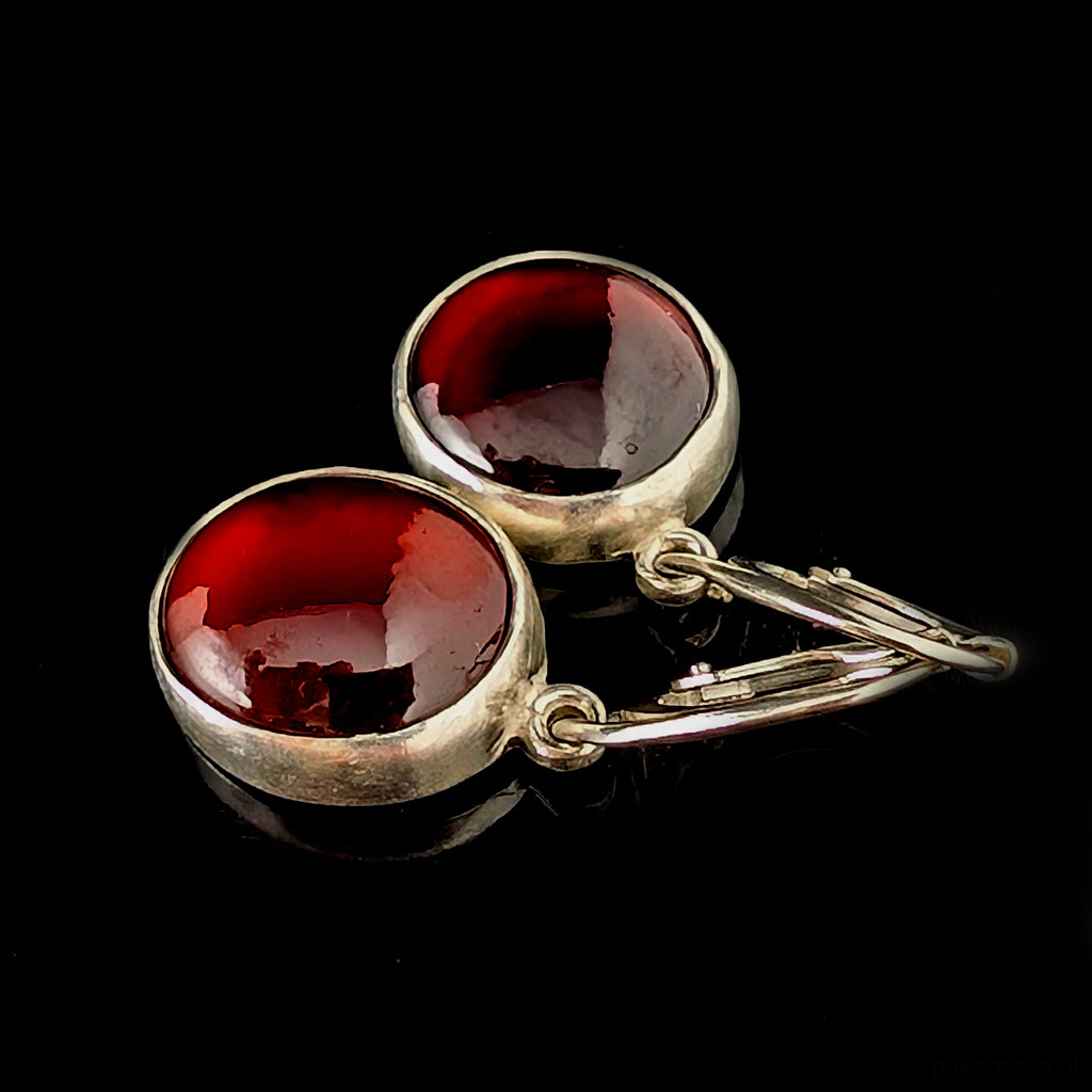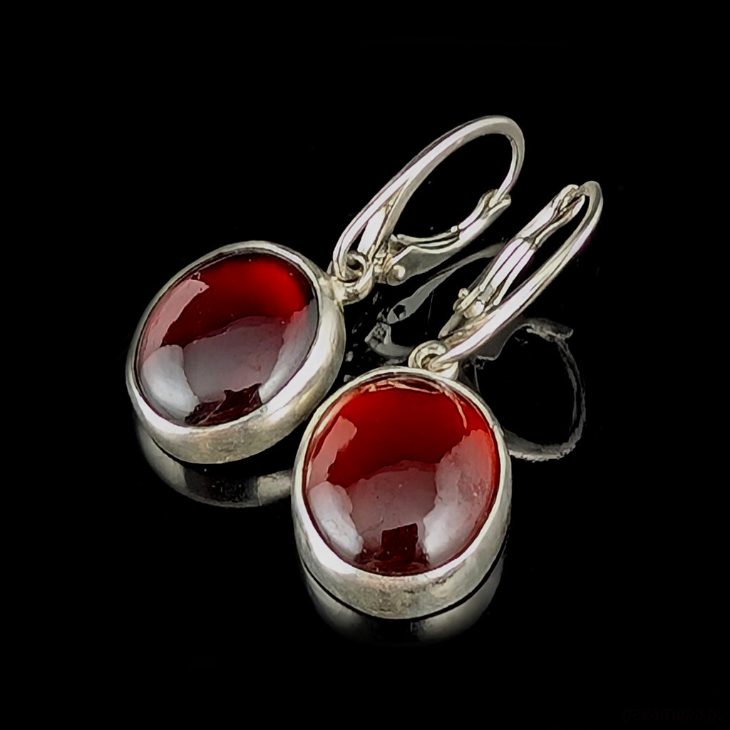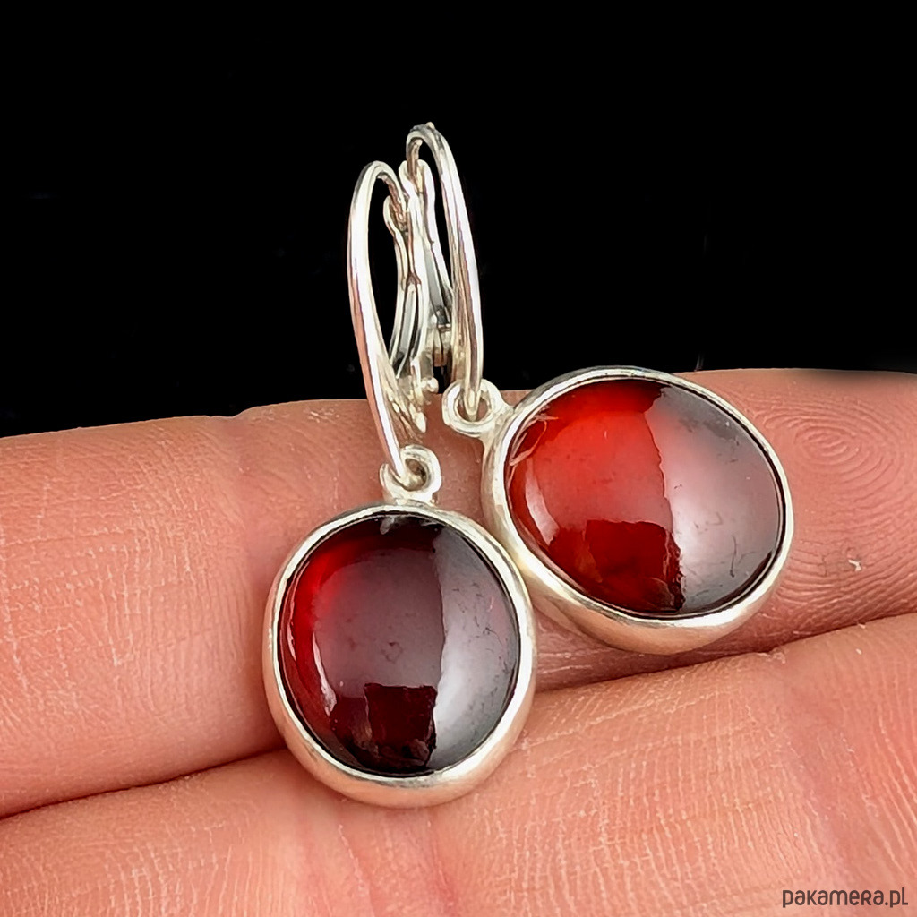 Kolczyki wykonane ze srebra 925 oraz pięknych granatów. Kamienie zachwycają nasyconą, głęboką barwą. Wymiary elementów oprawy kamienia 15 x 14 mm. Zapinane na klasyczne bigle angielskie. Długość całości z biglami 32 mm. Waga jednego kolczyka 4,2 grama. Kolczyki zostaną zapakowane w ozdobne pudełeczko.