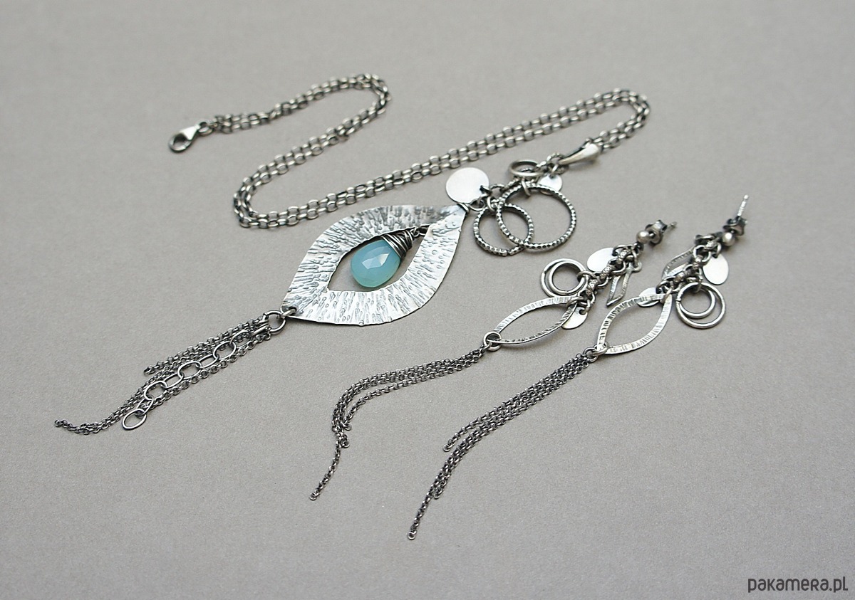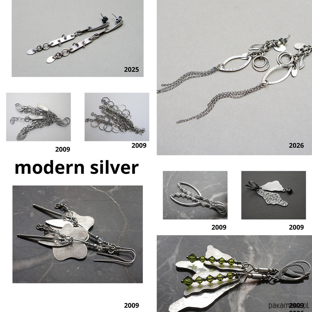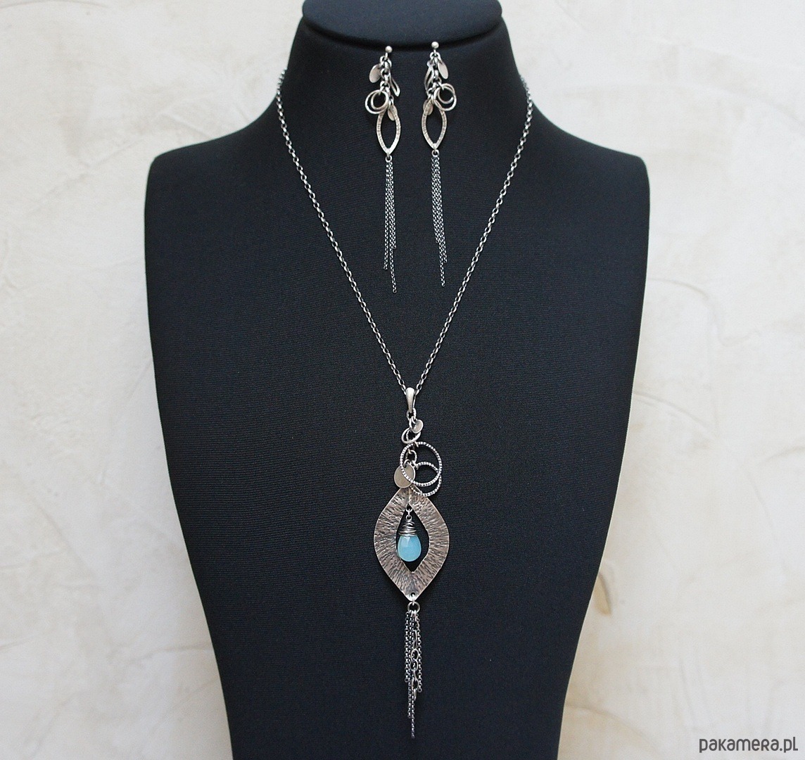 Kolczyki wykonane ze srebra [pr. 925] . Całość oksydowana i przetarta. Całkowita długość kolczyków ok. 10,5cm. Biżuteria ozdobnie zapakowana