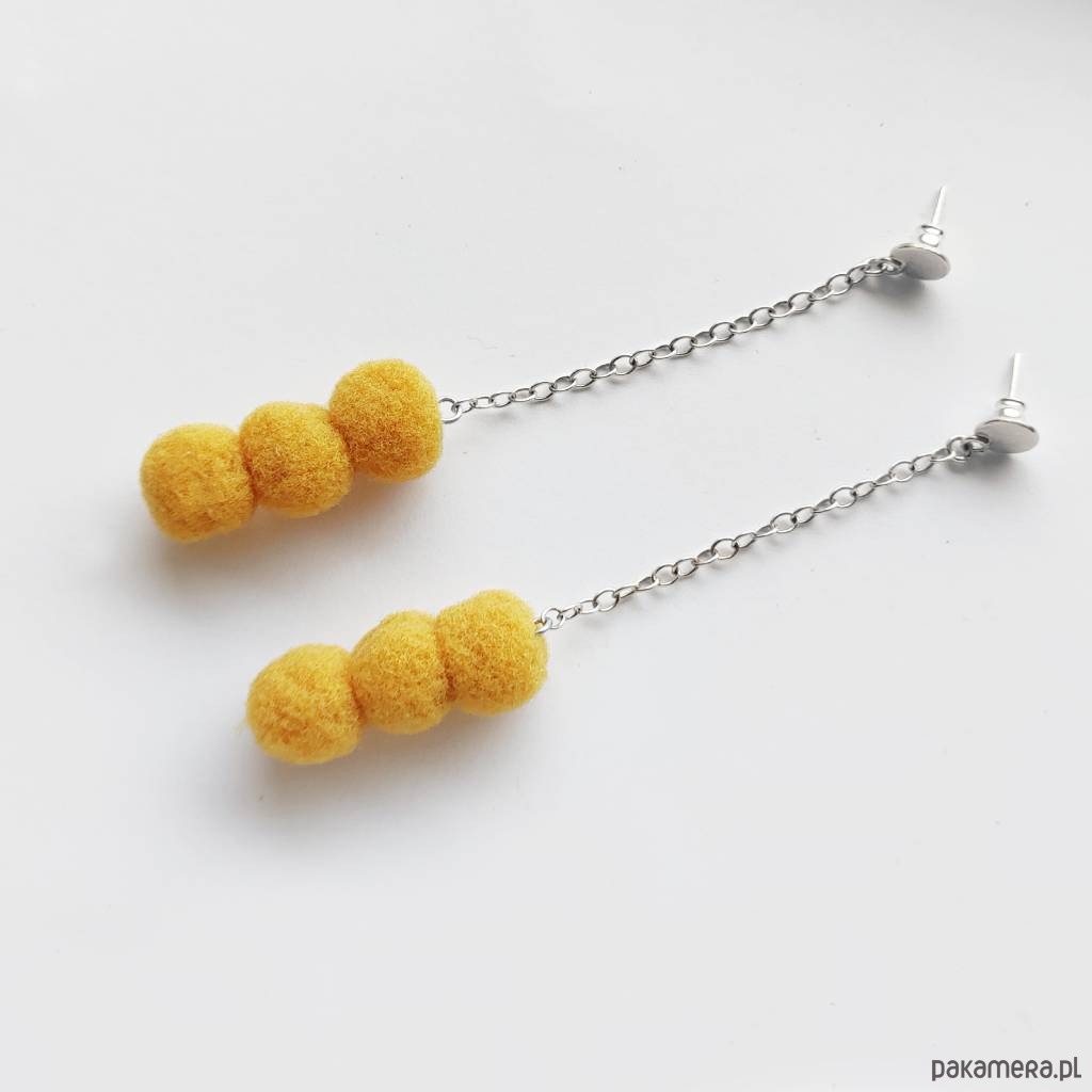 Oryginalność i prostota. OKRĄG – kształt doskonały. Kolekcję cechuje elegancja i prostota jak również ekstrawagancja i indywidualizm. Kolczyki wykonane są ze srebro, pompon ( 10 mm)Srebro – próby 0,925, zmatowione. Długość kolczyków – ok. 10 cm