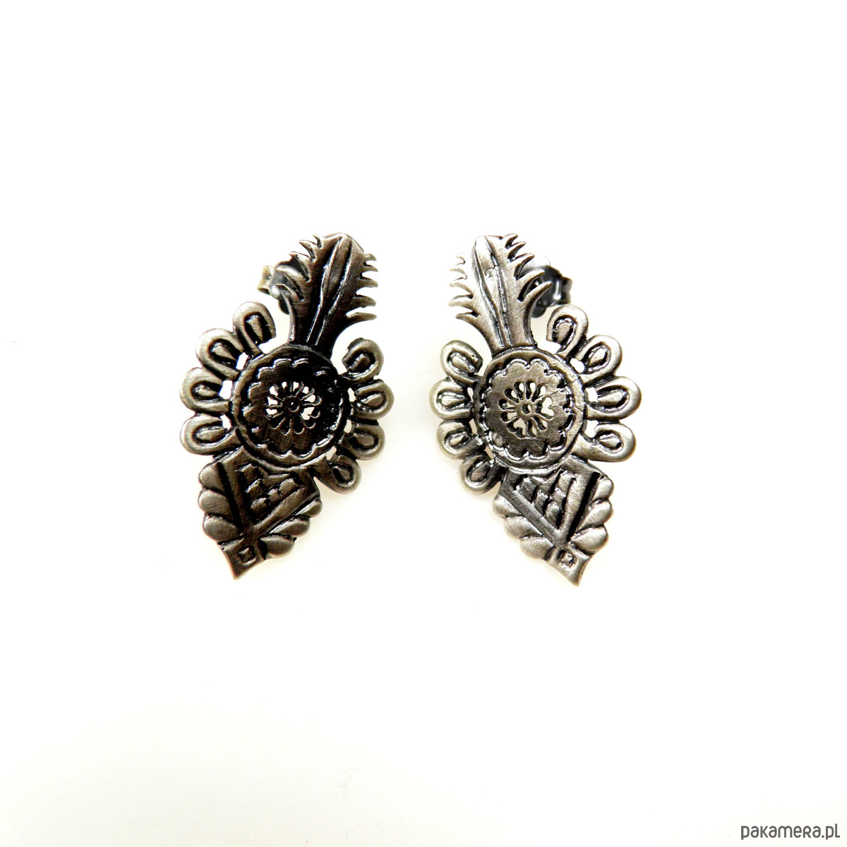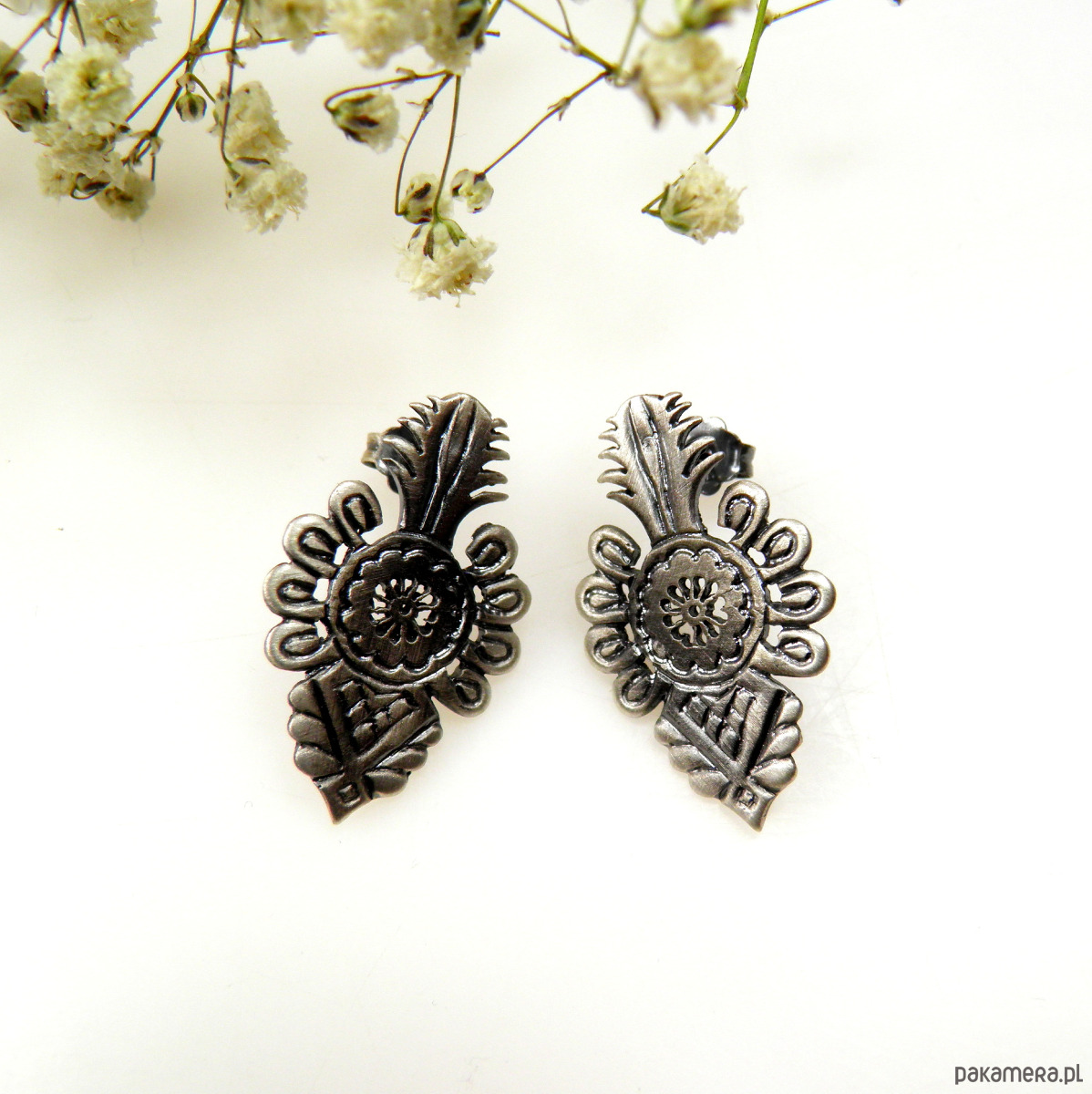 Kolczyki srebrne oksydowane - Parzenice góralskie na sztyftach mini