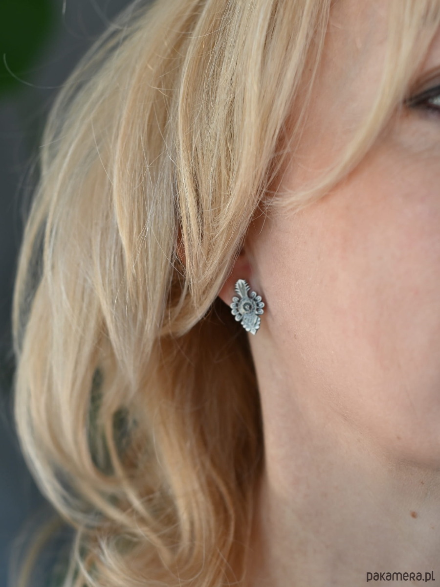 Kolczyki srebrne oksydowane – Parzenice góralskie na sztyftach mini