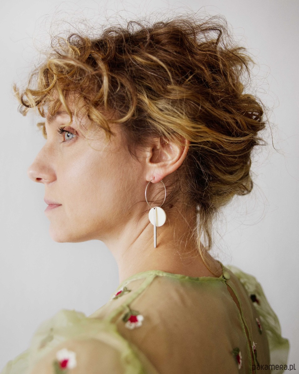 Koła kolczyków wykonane są ze srebra (AG 925), a patyczki z metalu jubilerskiego.