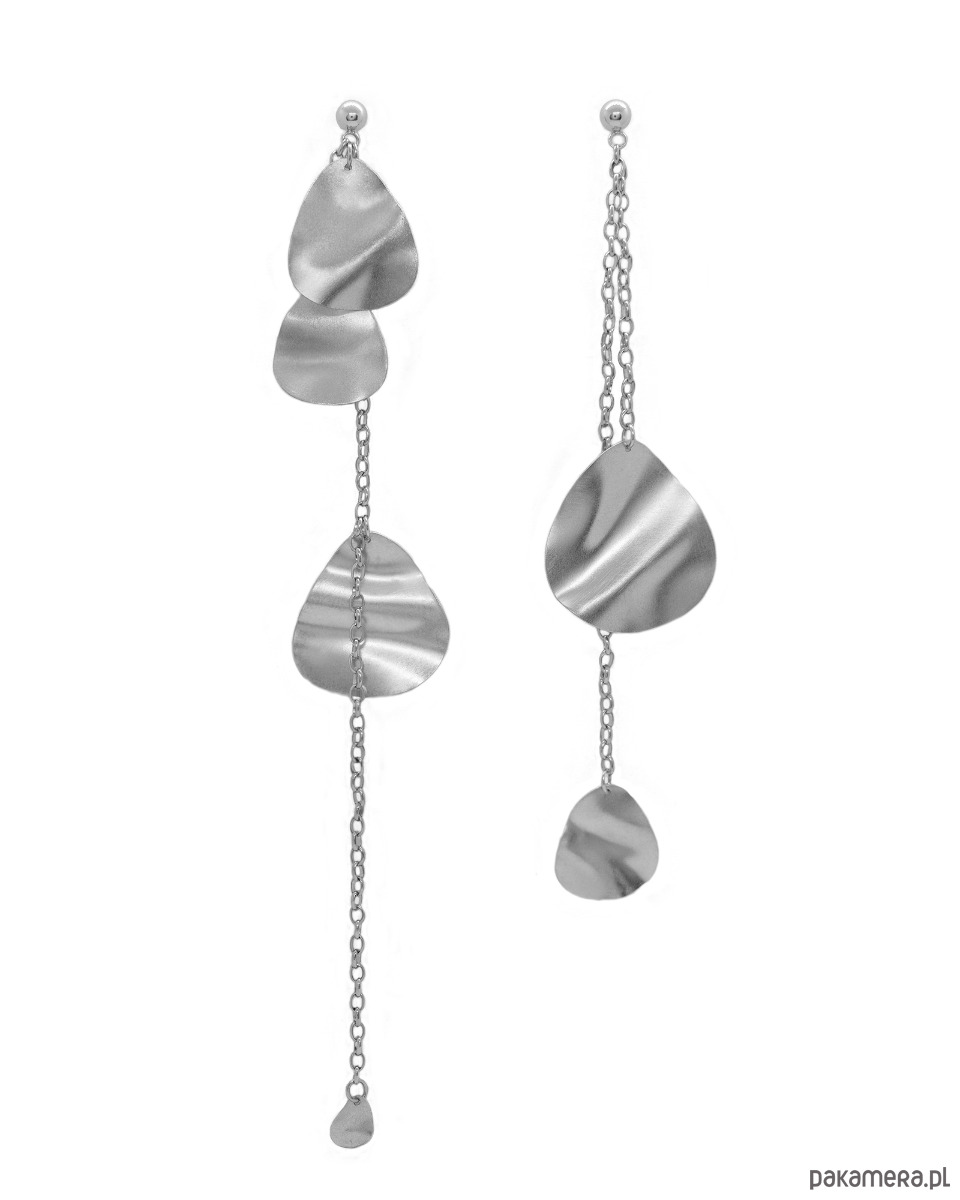 Asymetryczne kolczyki składające się z PŁATKÓW zawieszonych na łańcuszku i sztyfcie z kuleczką. Tworzą artystycznie dynamiczną kompozycję. Pomimo swego okazałego rozmiaru, kolczyki są zaskakująco lekkie, co zawdzięczają cienkiej mosiężnej blaszce, z której są wykonane. Dzięki temu możesz nosić je przez długi czas bez uczucia dyskomfortu. Ich lekkość sprawia, że są nie tylko wygodne, ale również pięknie poruszają się przy każdym ruchu.
