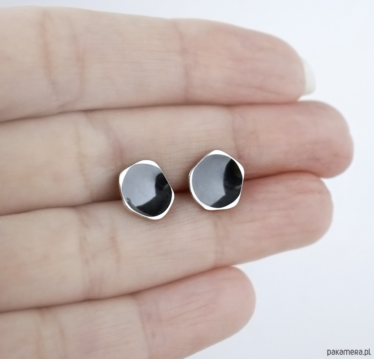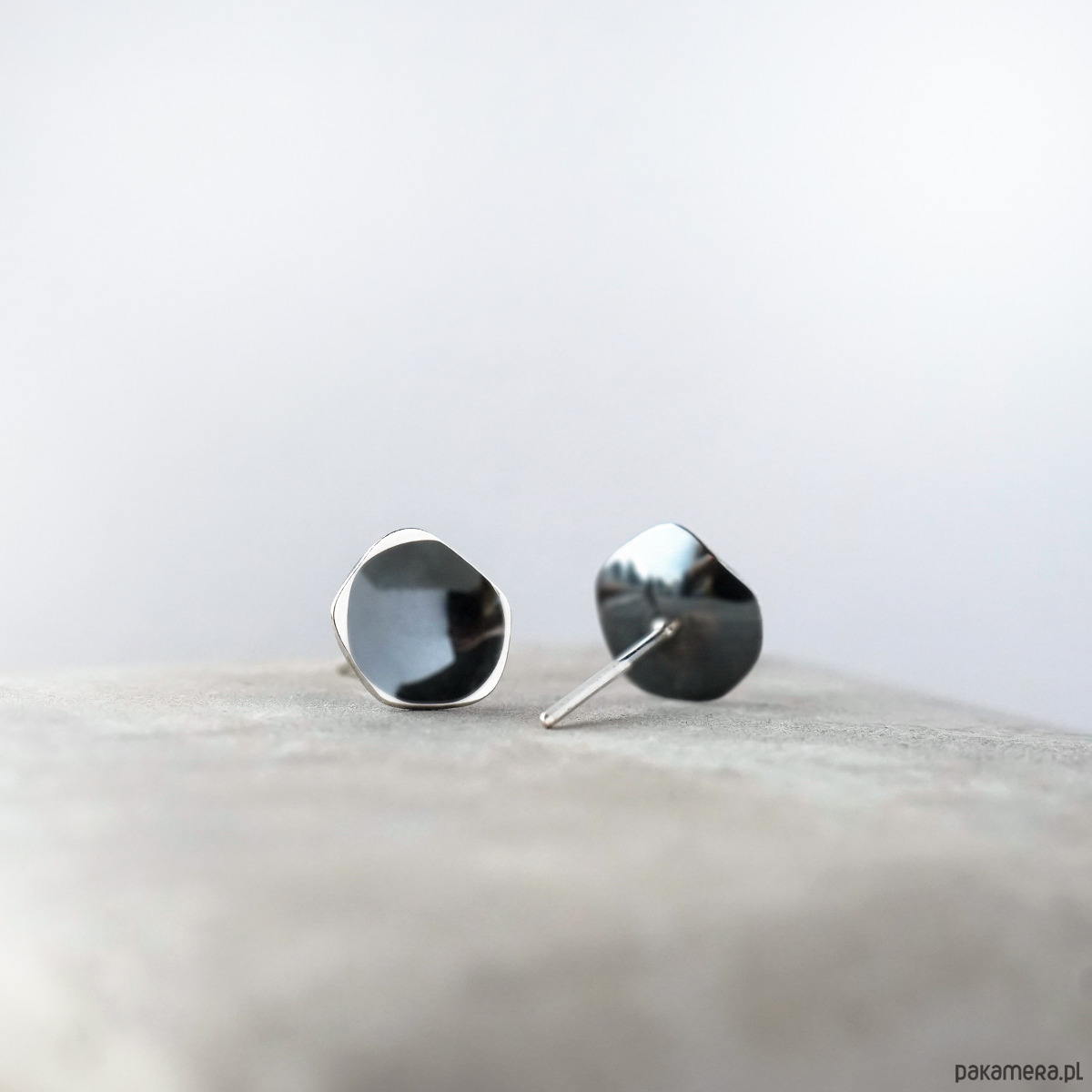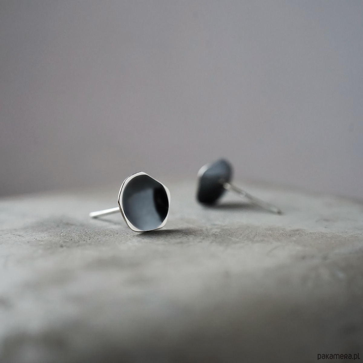 Delikatne srebrne kolczyki, formowane ręcznie, oksydowane i polrowane.
