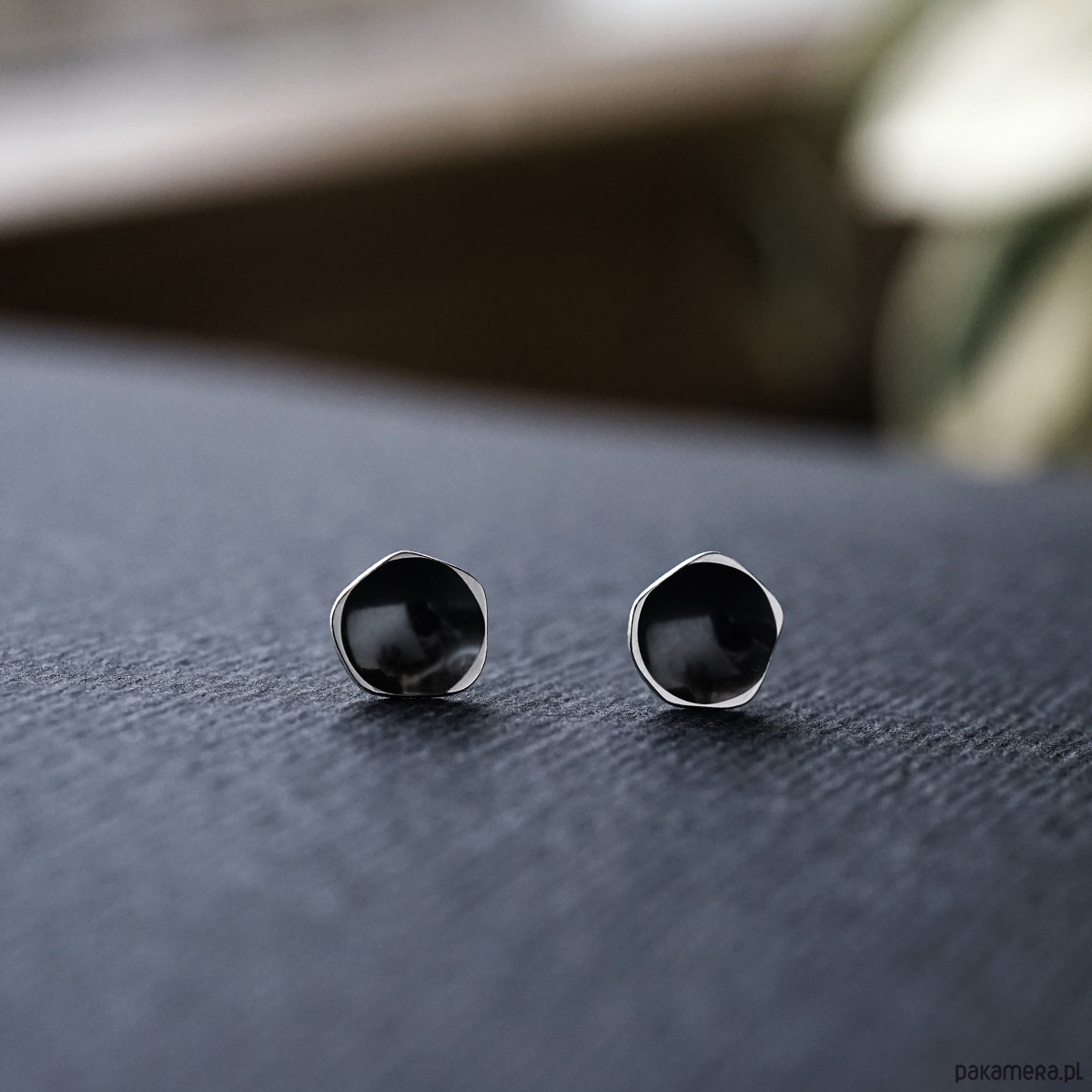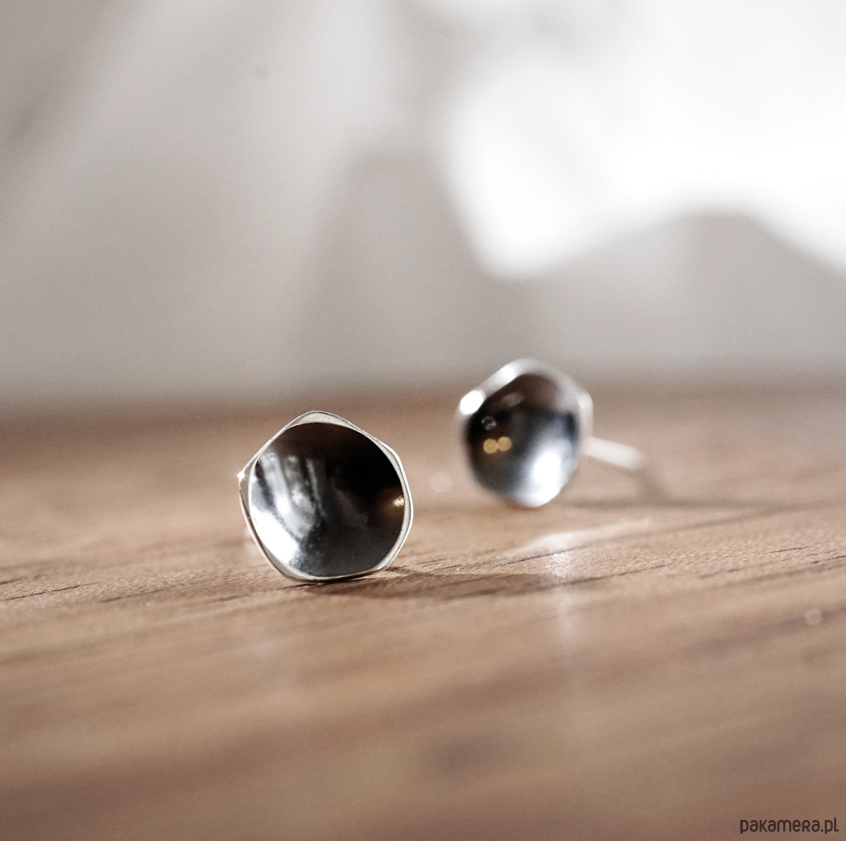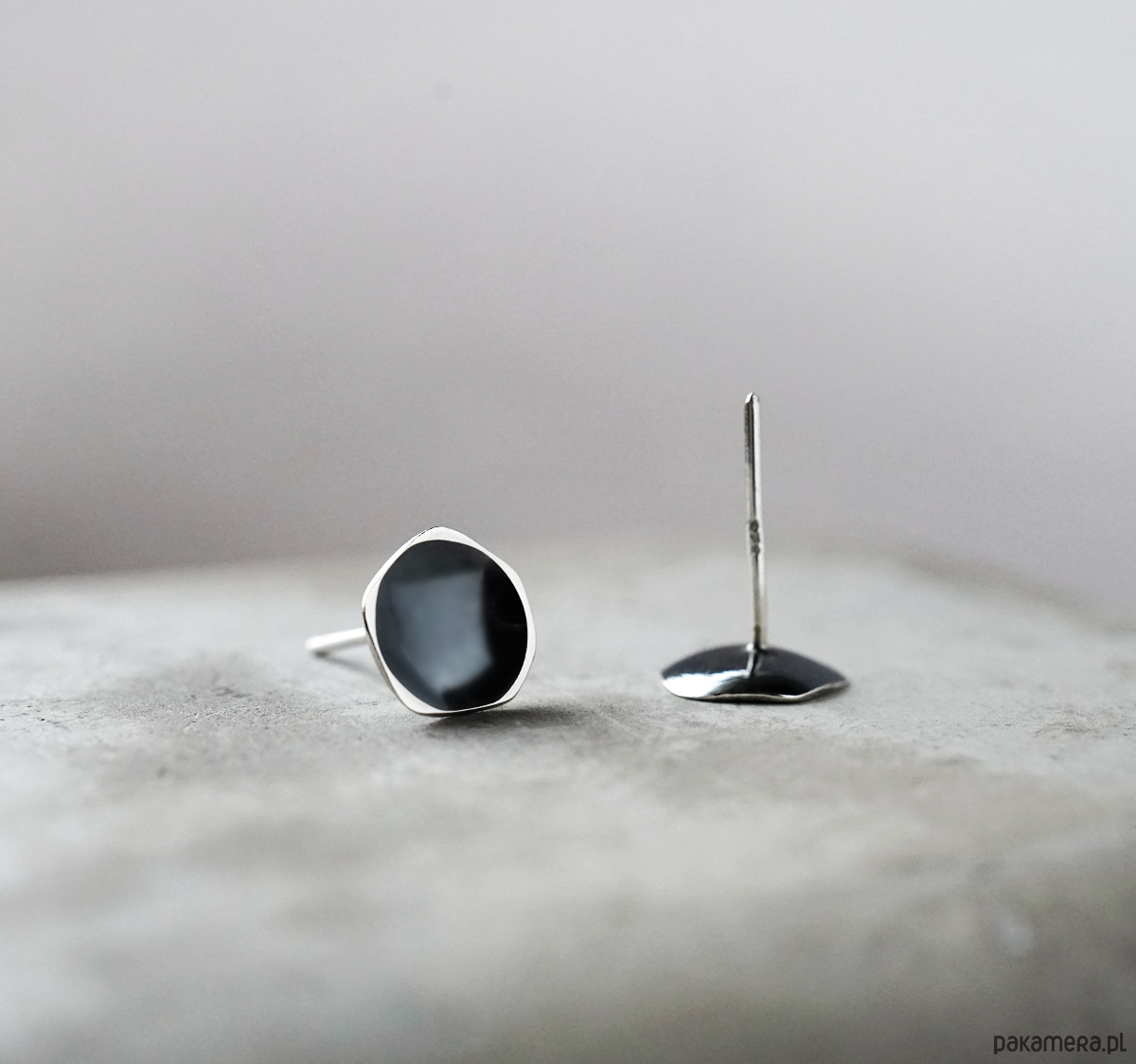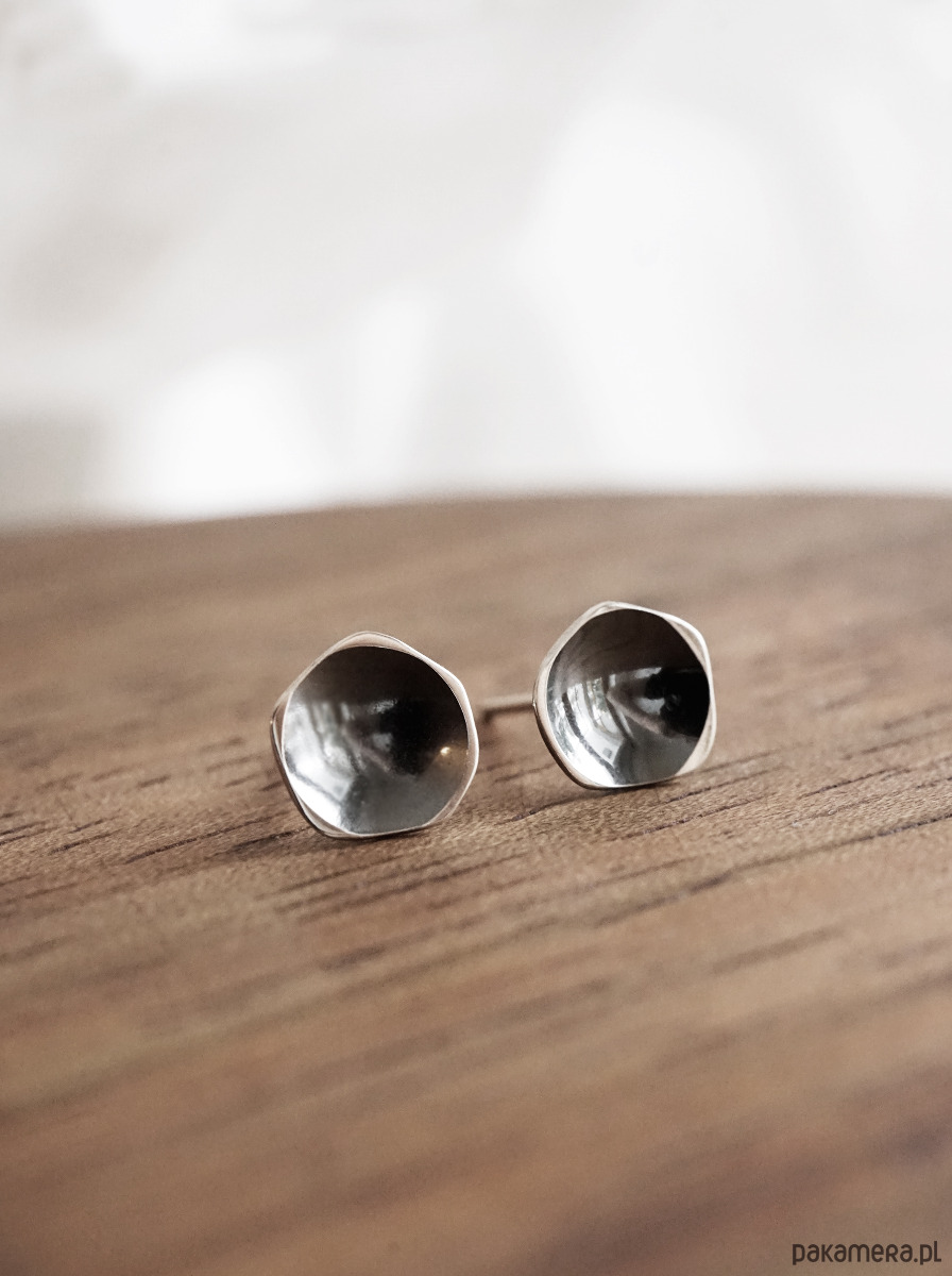 Delikatne srebrne kolczyki, formowane ręcznie, oksydowane i polrowane.