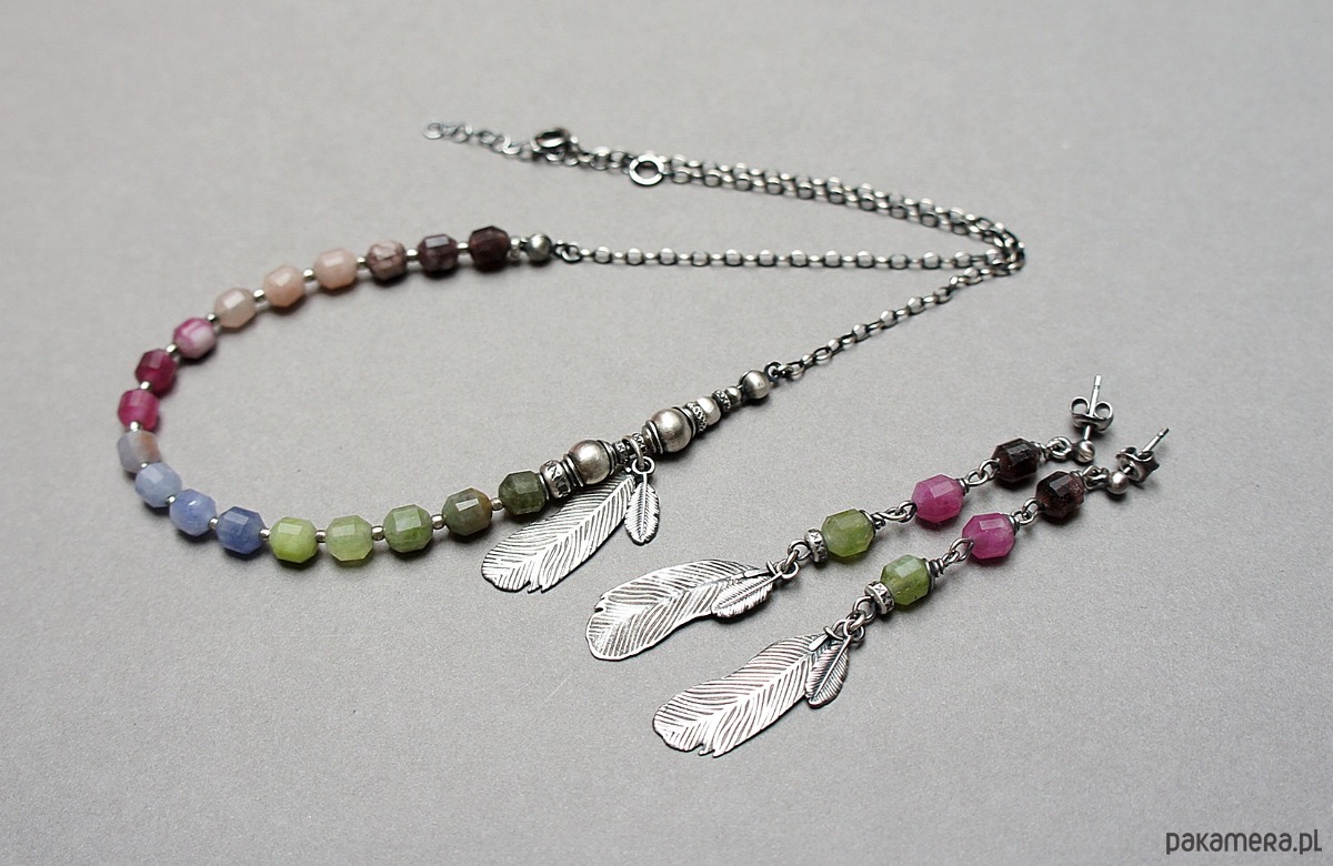 Długie kolczyki wykonane ze srebra [pr.925] w połączeniu z fasetowanymi baryłkami turmalinów [8mm]. Srebro oksydowane i przetarte. Całkowita długość kolczyków 7,5cm. Biżuteria ozdobnie zapakowana. Do kompletu można dokupić naszyjniki przedstawione na zdjęciach.