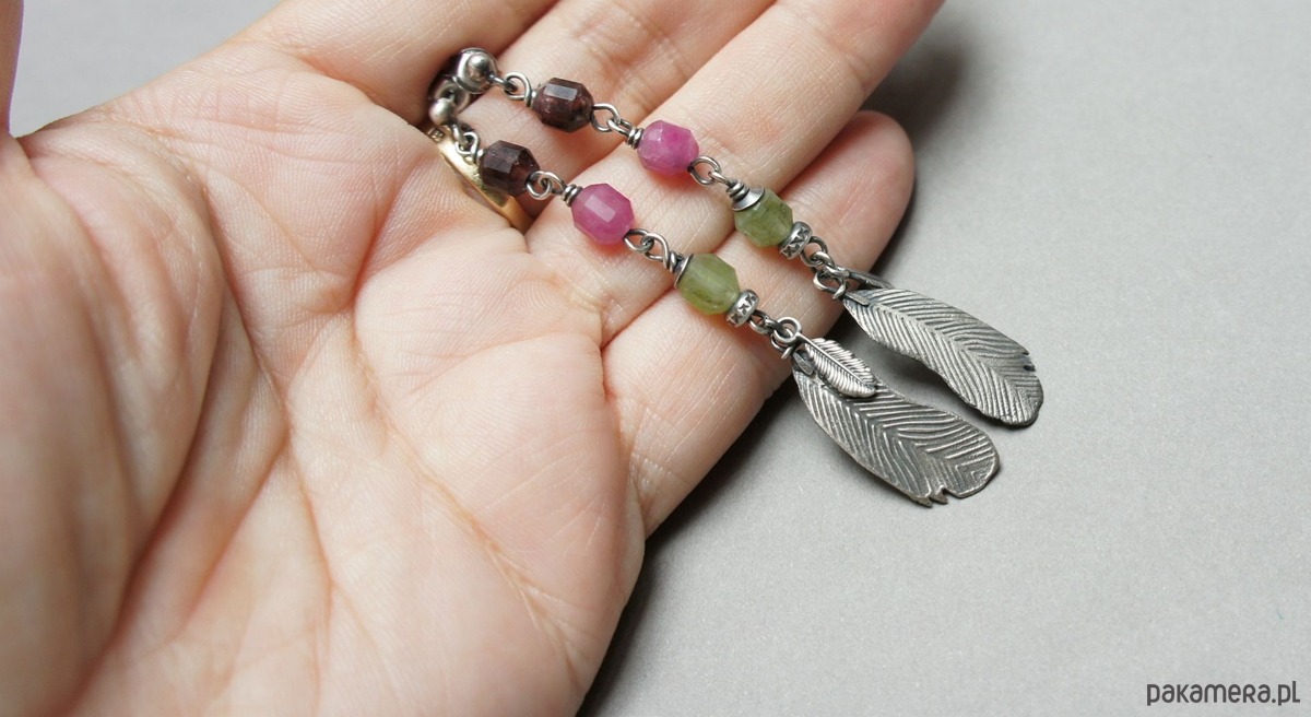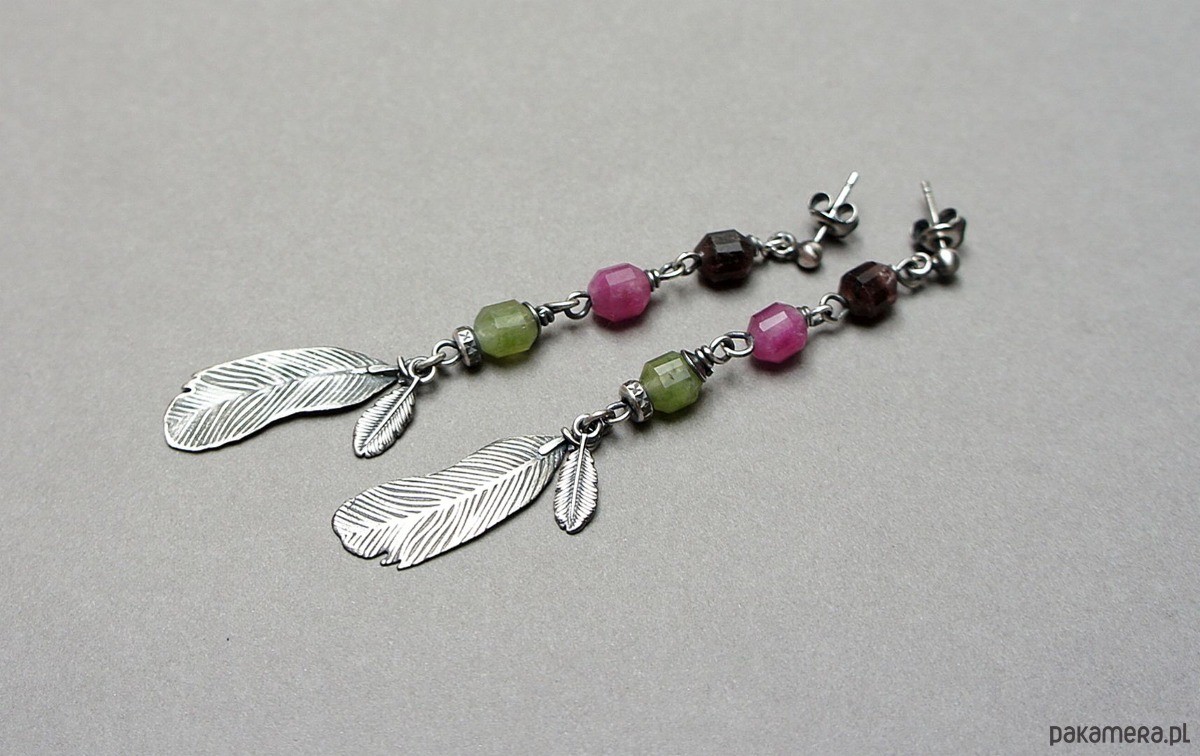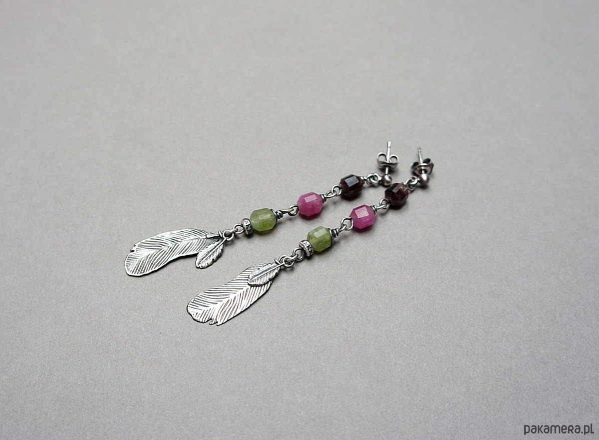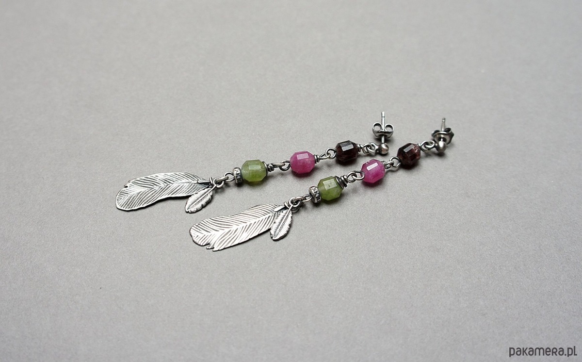 Długie, delikatne kolczyki wykonane ze srebra [pr.925] w połączeniu z fasetowanymi baryłkami turmalinów [8mm]. Srebro zaoksydowane i przetarte. Całkowita długość kolczyków ok. 7,5cm. Biżuteria ozdobnie zapakowana.