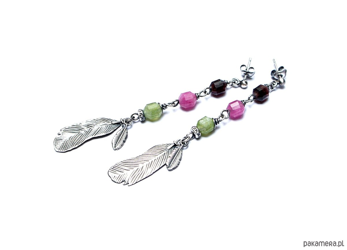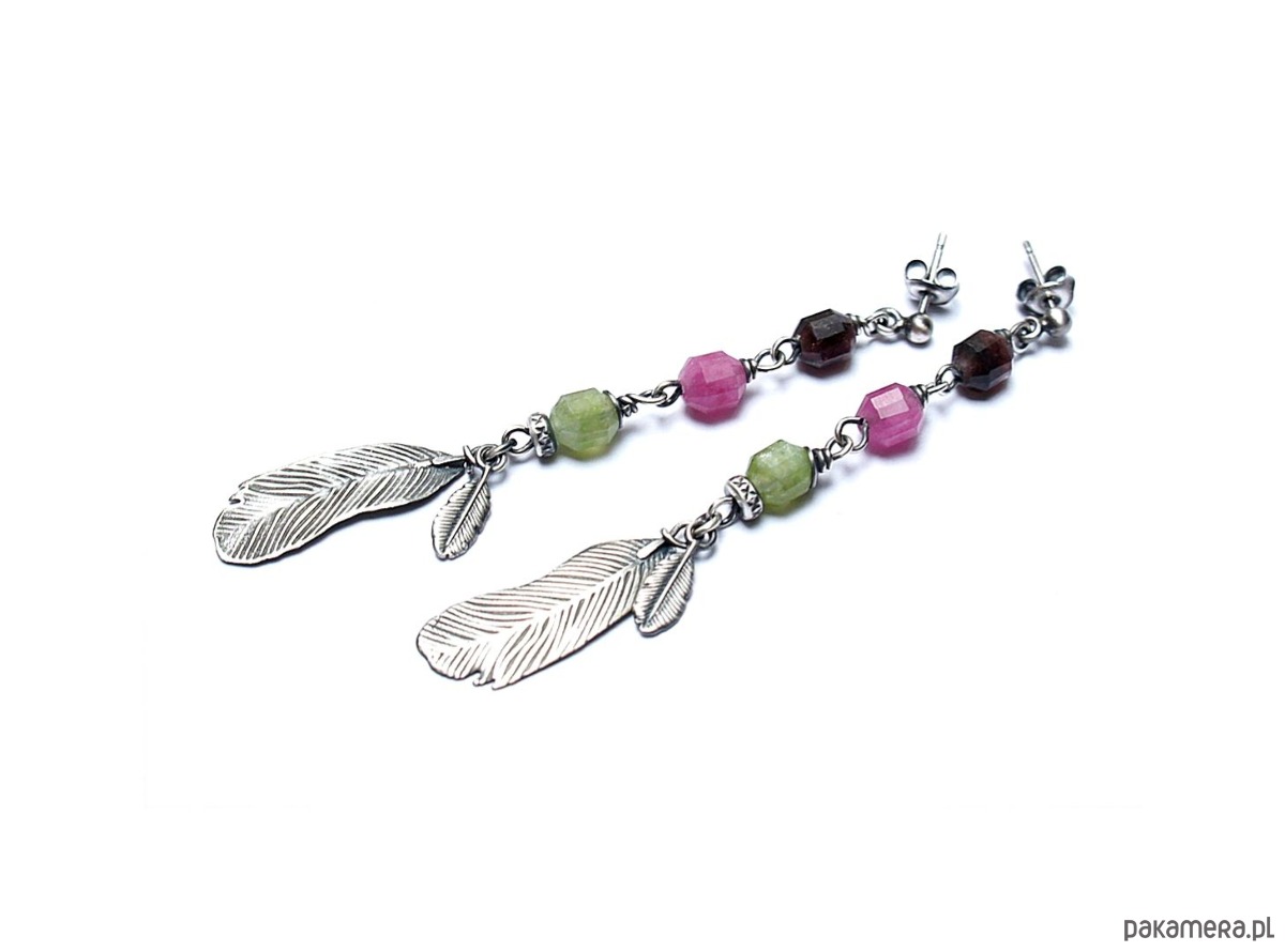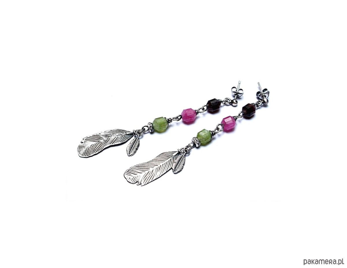 Długie, delikatne kolczyki wykonane ze srebra [pr.925] w połączeniu z fasetowanymi baryłkami turmalinów [8mm]. Srebro zaoksydowane i przetarte. Całkowita długość kolczyków ok. 7,5cm. Biżuteria ozdobnie zapakowana.