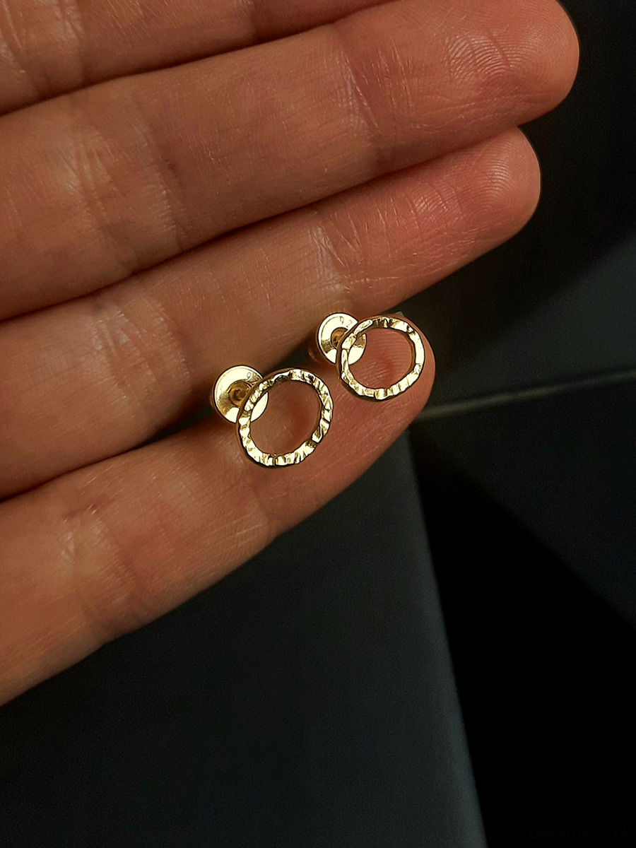 Kolczyki -sztyfty O są delikatnym, acz bardzo charakterystycznym akcentem. Stworzyłam je ze srebra próby 925, obdarowałam dziką teksturą, oraz pozłociłam 24 karatowym złotem.